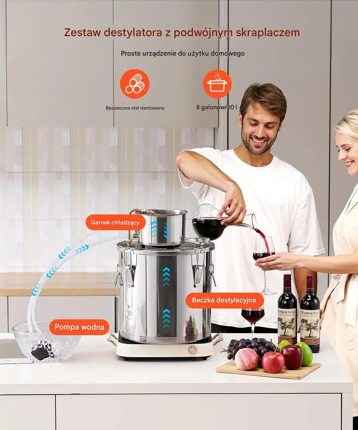 Destylator alkoholu 30L z pompą stal nierdzewna do whisky i wina