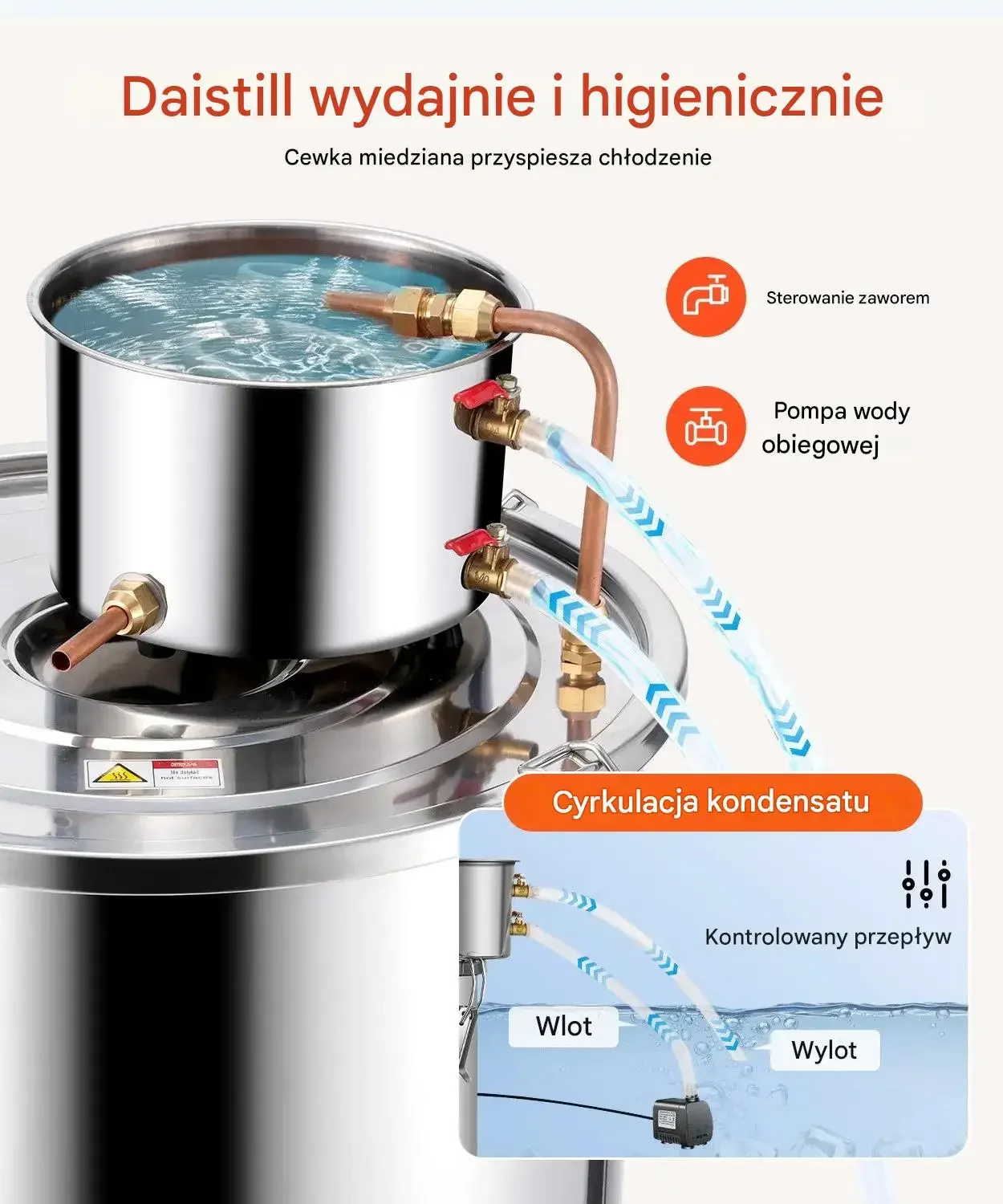 - ➡️ Czysty smak destylatów: miedziana chłodnica redukuje posmak i zanieczyszczenia