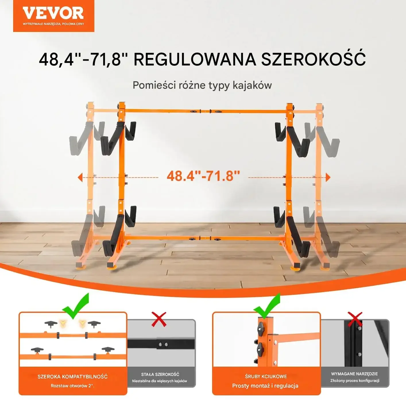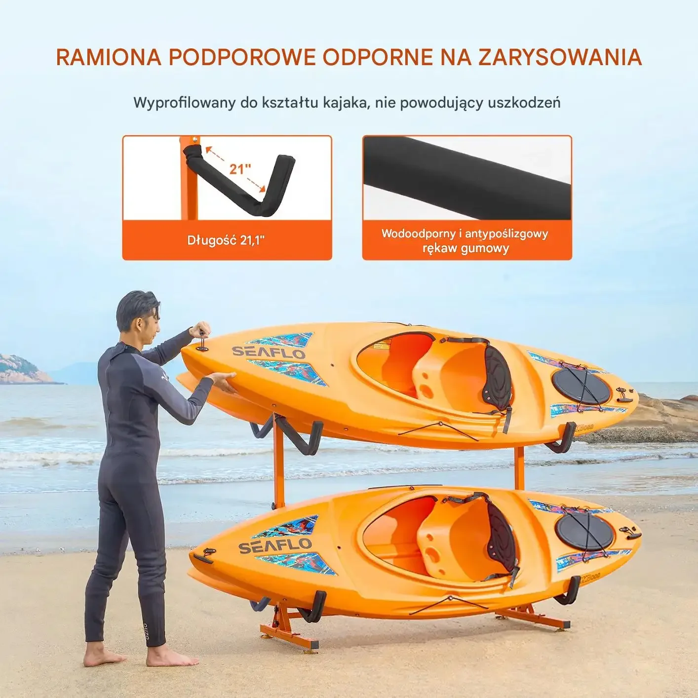 - ⭐ Przechowywanie kajaków: Bezpieczne i stabilne miejsce dla czterech kajaków, w tym dużych i dwuosobowych.