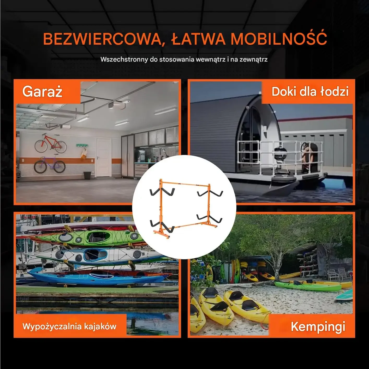 Stojak na Kajaki Wolnostojący – Stabilne i Bezpieczne Przechowywanie dla 4 Kajaków