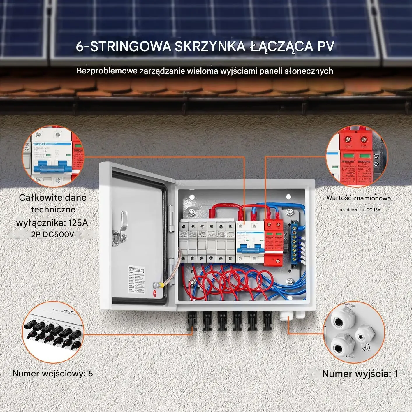 - ⭐⭐Obsługa 6 stringów – elastyczność i wydajność dla średnich i dużych systemów fotowoltaicznych.