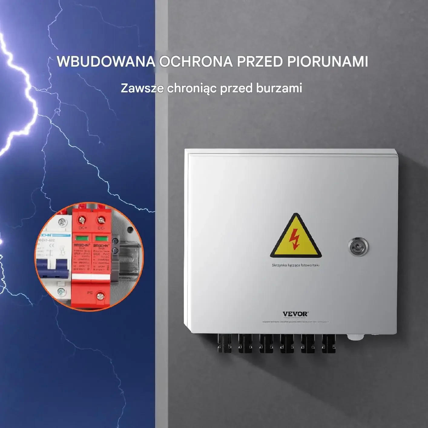 Skrzynka łączeniowa PV to profesjonalne rozwiązanie dla instalacji fotowoltaicznych, zaprojektowane z myślą o długotrwałej niezawodności i bezpieczeństwie. Wykonana z wytrzymałej stali walcowanej na zimno oraz wyposażona w obudowę o klasie szczelności IP65, zapewnia pełną ochronę przed pyłem, wodą oraz trudnymi warunkami zewnętrznymi. Produkt spełnia wymagania systemów PV średniej i dużej skali, zapewniając łatwą obsługę i najwyższy poziom ochrony.