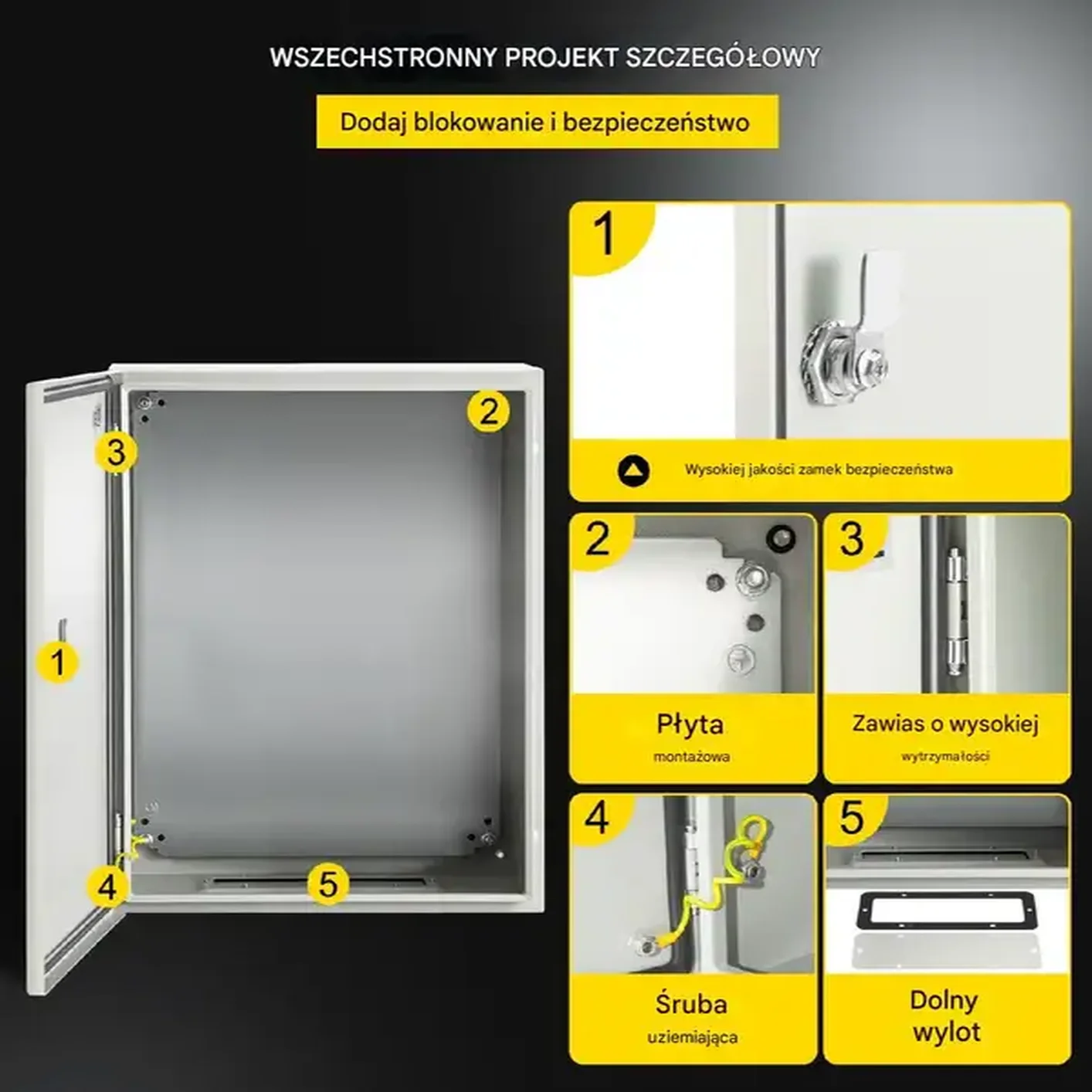 - Bezpieczeństwo urządzeń – klasa IP66 chroni przed wodą, pyłem i uszkodzeniami mechanicznymi.