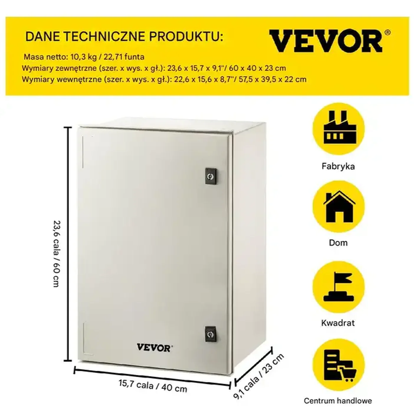 Skrzynka elektryczna o wymiarach 60x40x23 cm, wykonana z wysokiej jakości włókna szklanego (SMC), to trwałe i funkcjonalne rozwiązanie dla systemów elektrycznych. Lekka, a zarazem solidna konstrukcja zapewnia odporność na uszkodzenia mechaniczne, korozję oraz trudne warunki środowiskowe. Klasa ochrony IP66 gwarantuje niezawodność działania, czyniąc obudowę idealnym wyborem do zastosowań zarówno wewnętrznych, jak i zewnętrznych.