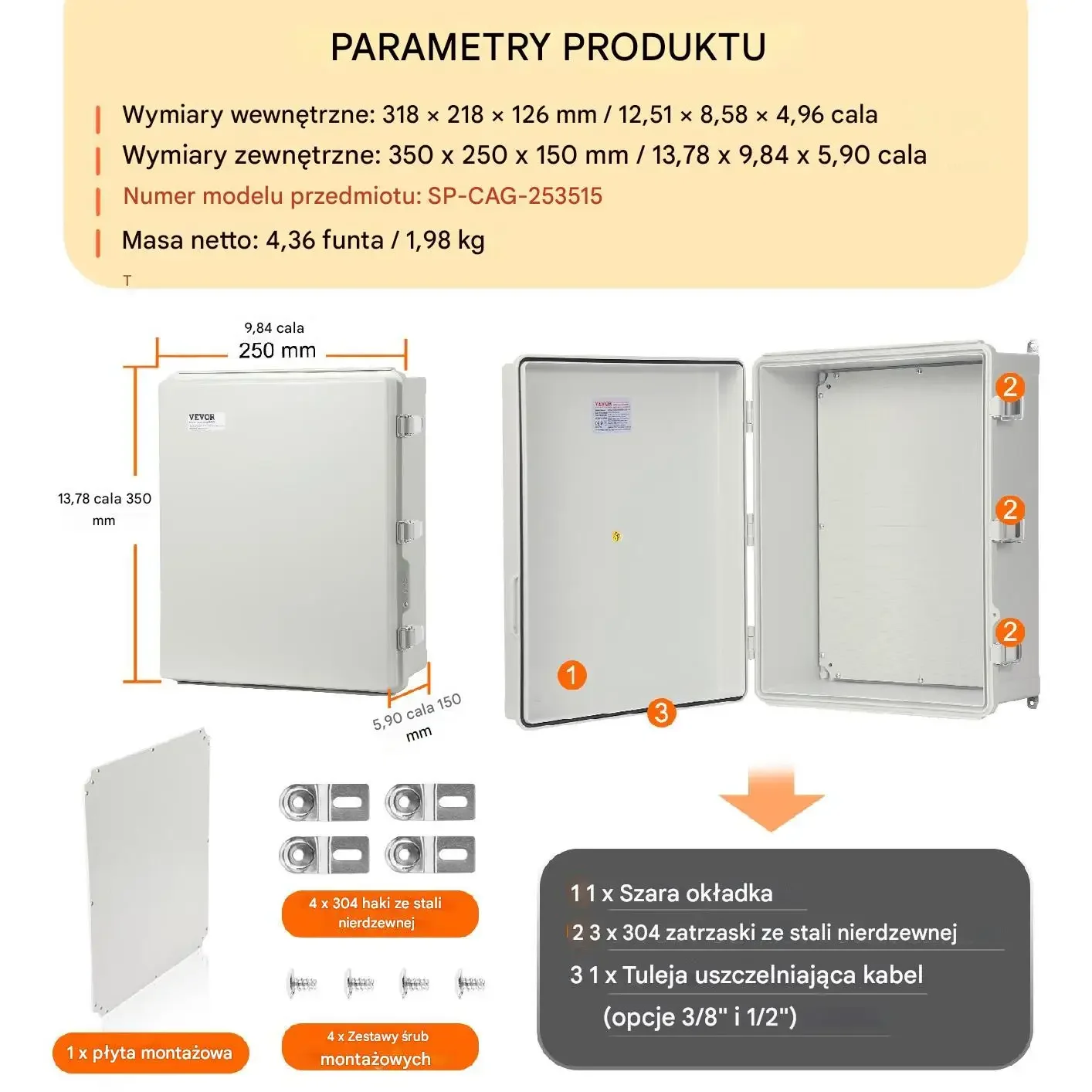 Puszka hermetyczna obudowa elektryczna IP67 ABS 35x25x15cm