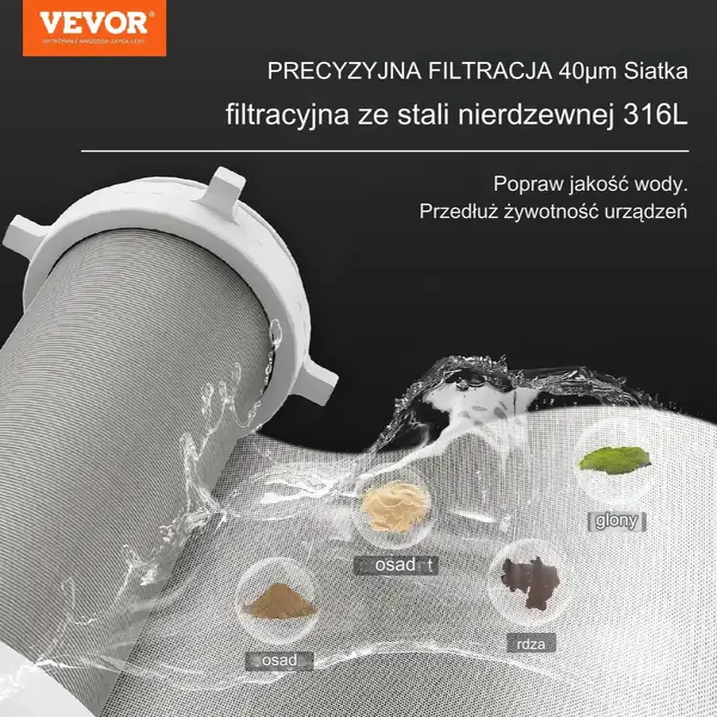 - ✅ Skuteczne filtrowanie 40 mikronów: Usuwa piasek, rdzę, muł i inne osady, poprawiając jakość wody.