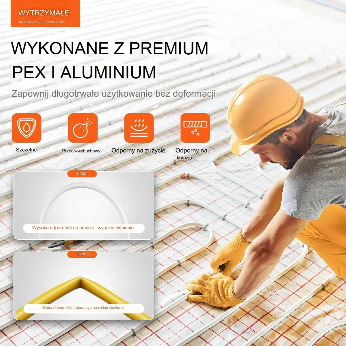 - ✅ Wysokiej jakości materiały – Rura wykonana z najwyższej jakości PEX i aluminium, odporna na pękanie, wycieki i korozję, co zapewnia długotrwałą i niezawodną wydajność.