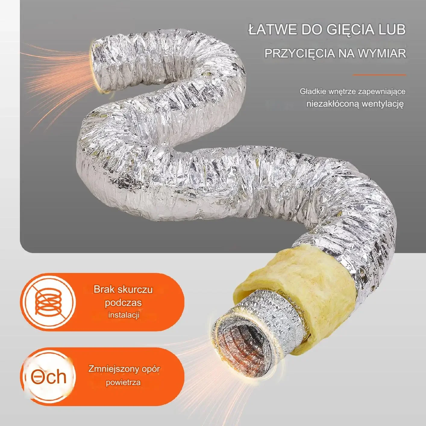 - ✅ Elastyczny i łatwy w obróbce – można go giąć, ściskać i ciąć bez wpływu na szczelność i przepływ powietrza
