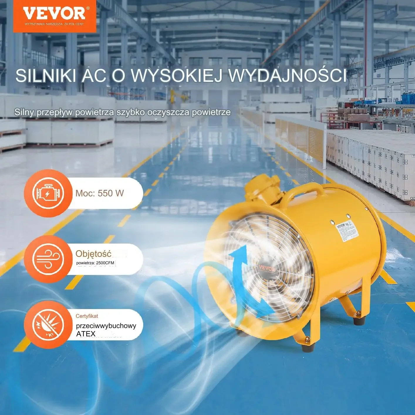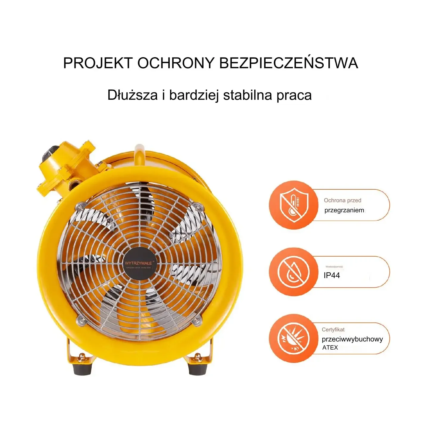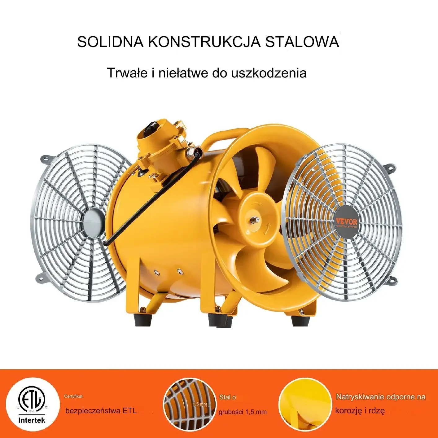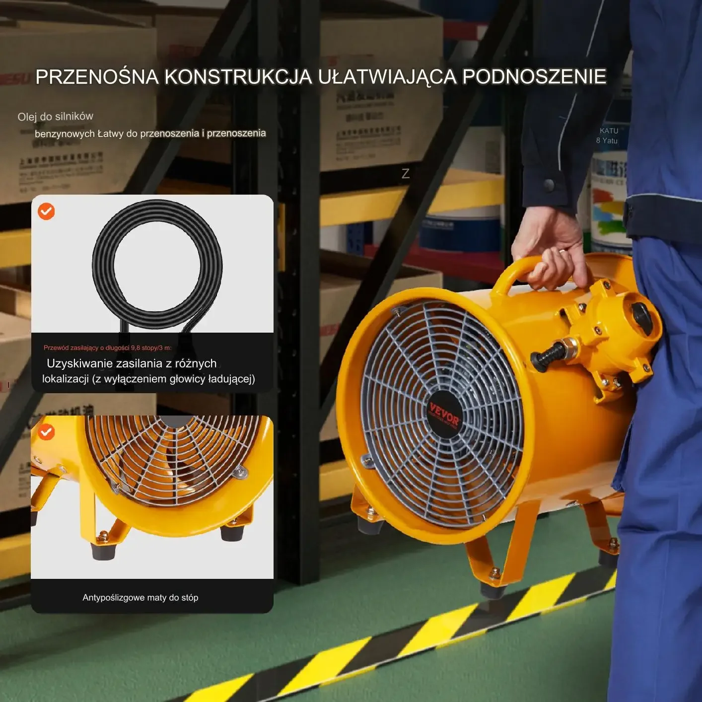 Szukasz potężnego i niezawodnego rozwiązania do wentylacji pomieszczeń przemysłowych, robót budowlanych czy systemów wyciągowych? Przenośny wentylator osiowy o średnicy 304 mm (12 cali) to idealne urządzenie do intensywnego transportu powietrza. Dzięki solidnej konstrukcji, kompaktowej obudowie oraz przewodowi zasilającemu o długości 3 metrów, ten model świetnie sprawdzi się w terenie i trudnych warunkach pracy.