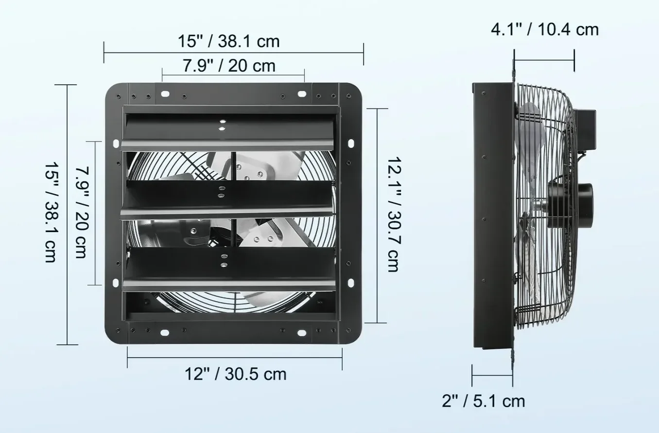 Start / Sklep / Dom i Ogród / Budownictwo i Akcesoria / Klimatyzacja i wentylacja / Wentylatory / Wentylator wyciągowy 406 mm 1400 RPM – aluminiowy do szklarni i garażu