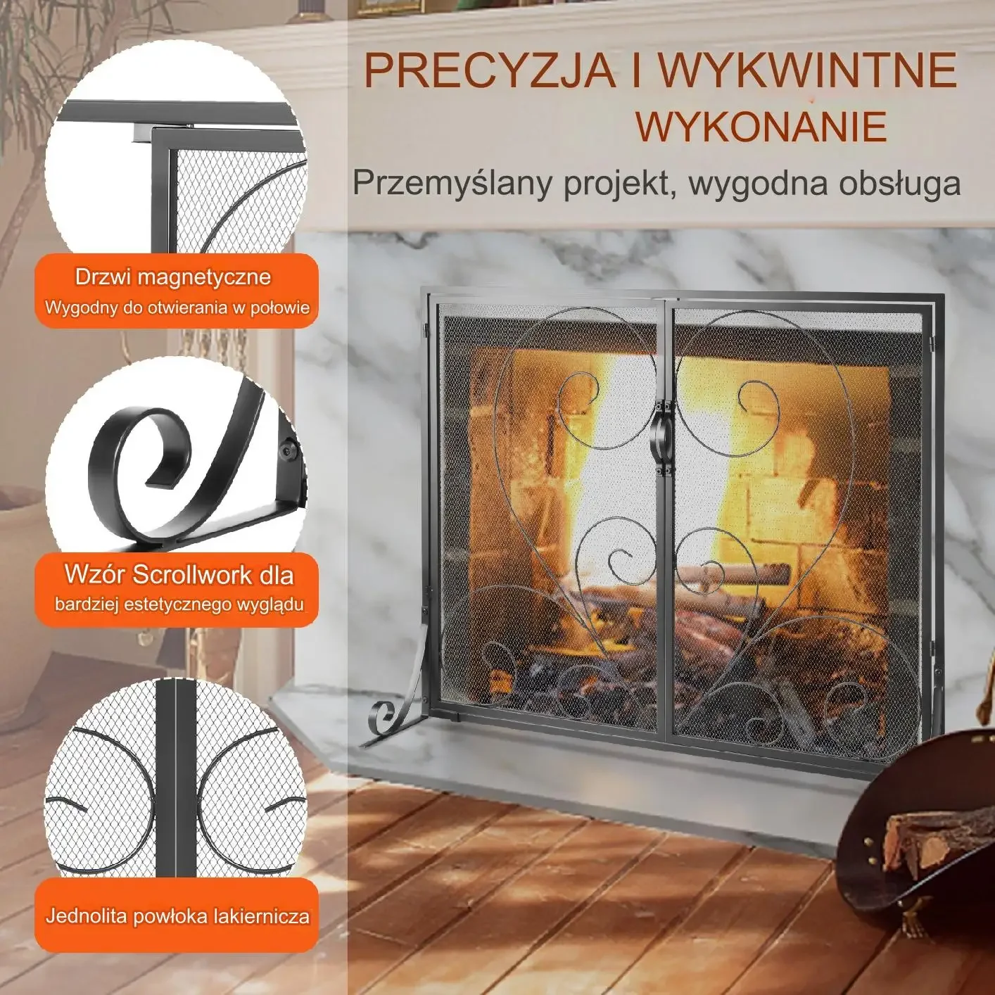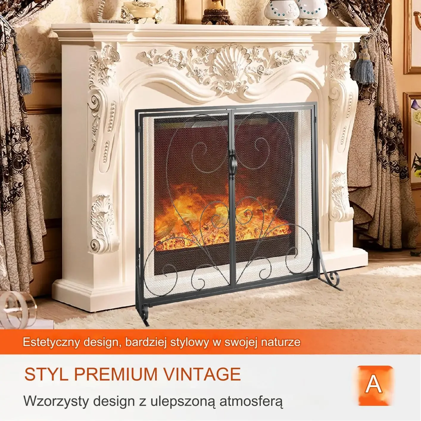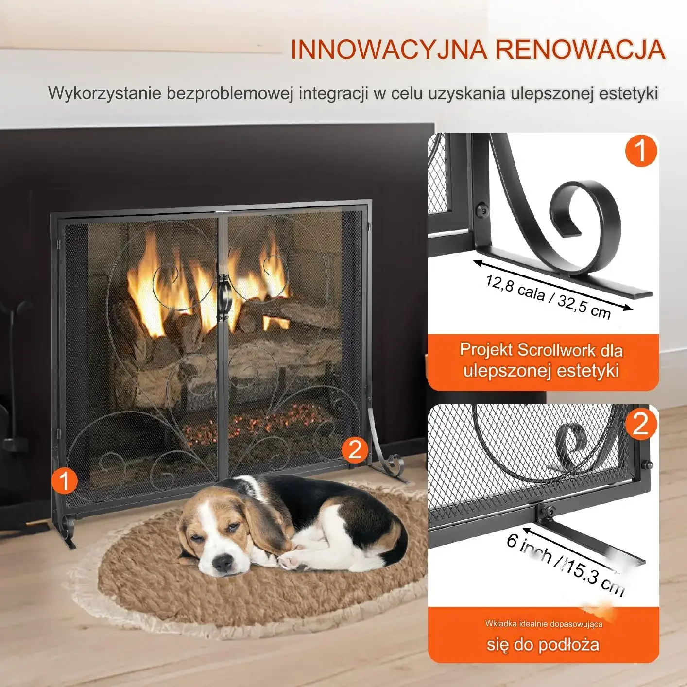 Parawan kominkowy 2-częściowy 99x80cm żeliwny wolnostojący ochrona iskier