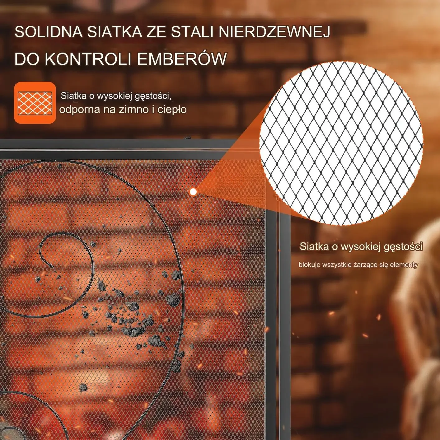 Nasza siatka o wysokiej gęstości utrzymuje przepływ powietrza, szybciej chłodzi kominek i zapobiega rozpryskiwaniu się żaru, zapewniając bezpieczeństwo i funkcjonalność.