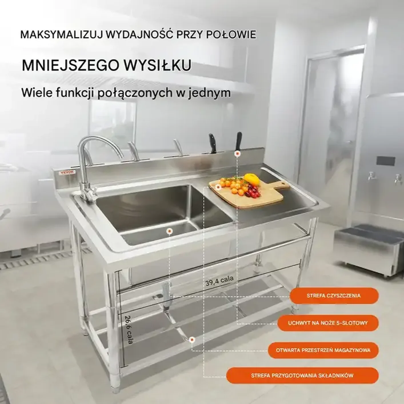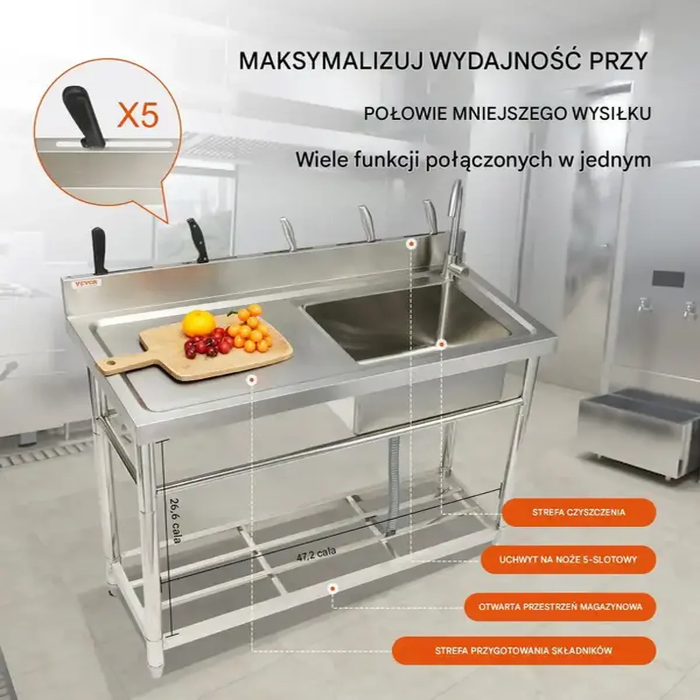 Potrzebujesz niezawodnego zlewu, który sprosta każdemu zadaniu? Ten zlewozmywak gastronomiczny ze stali nierdzewnej o pojemności 121 litrów to prawdziwy mistrz w kuchni, barze czy garażu. Wytrzymały, praktyczny i stylowy – idealny dla tych, którzy stawiają na jakość!