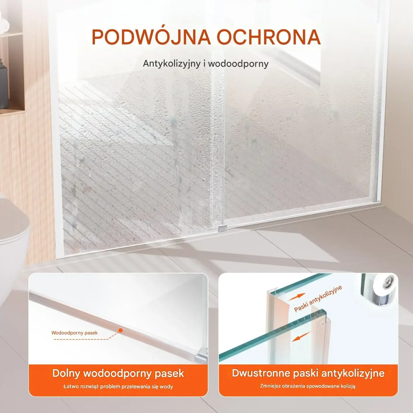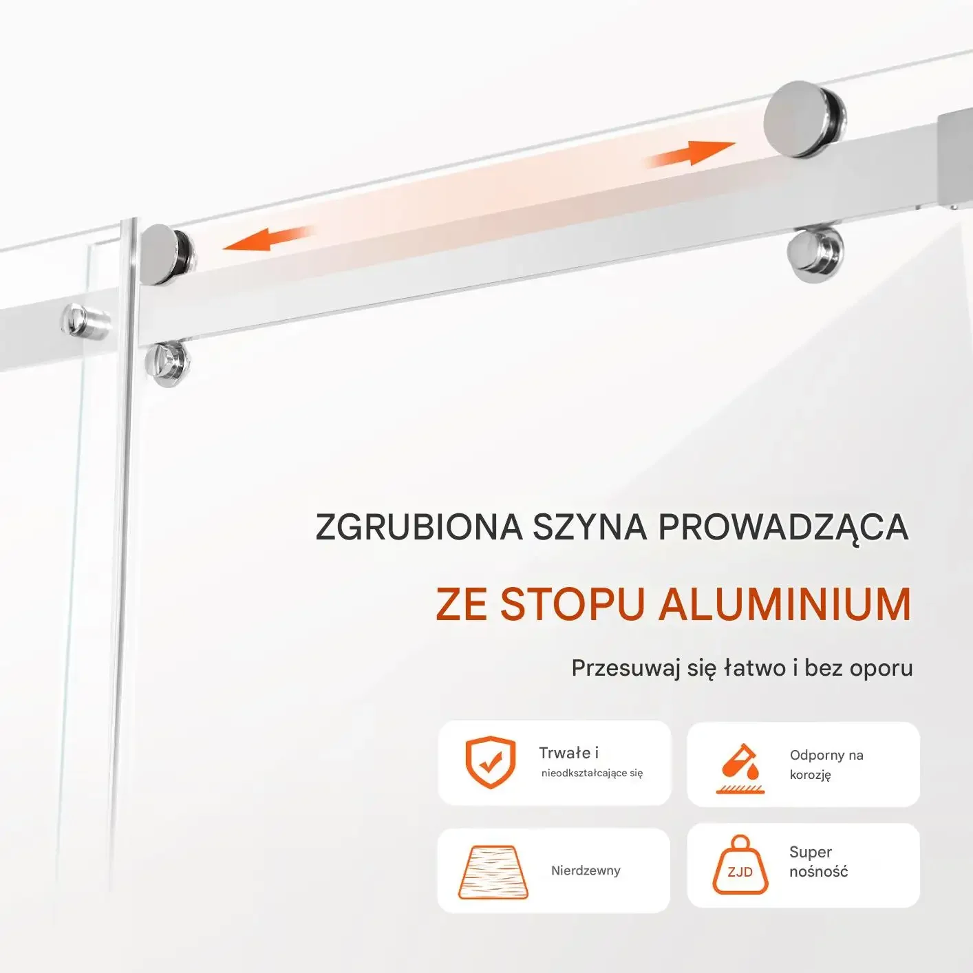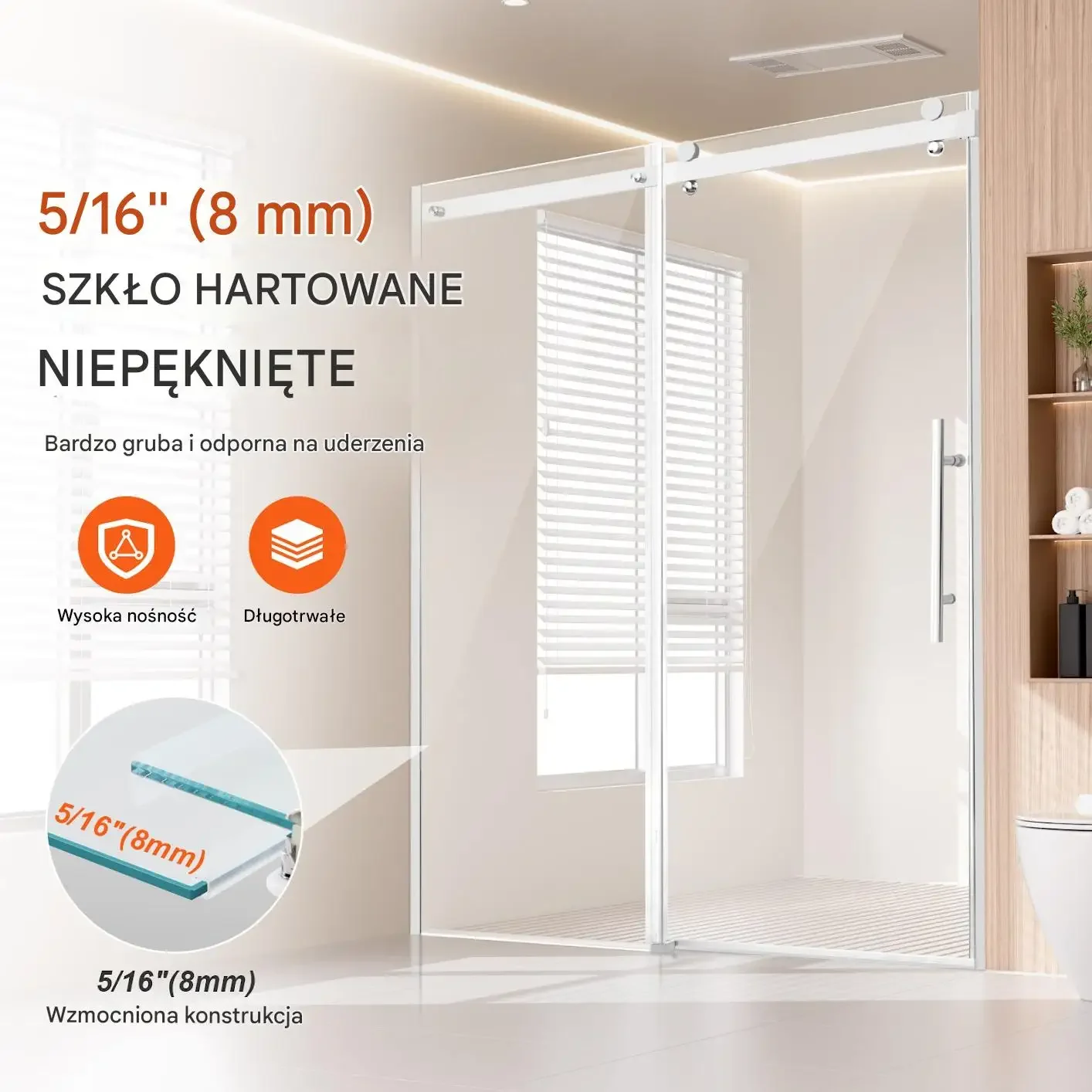 Eleganckie bezramowe drzwi prysznicowe o regulowanej szerokości 147-150 cm i wysokości 190 cm, wykonane z hartowanego szkła o grubości 8 mm. Wykończenie w kolorze matowej czerni nadaje nowoczesny i stylowy wygląd każdej łazience. Drzwi przesuwne zapewniają wygodne i ciche użytkowanie, a solidna konstrukcja gwarantuje trwałość i odporność na uszkodzenia.