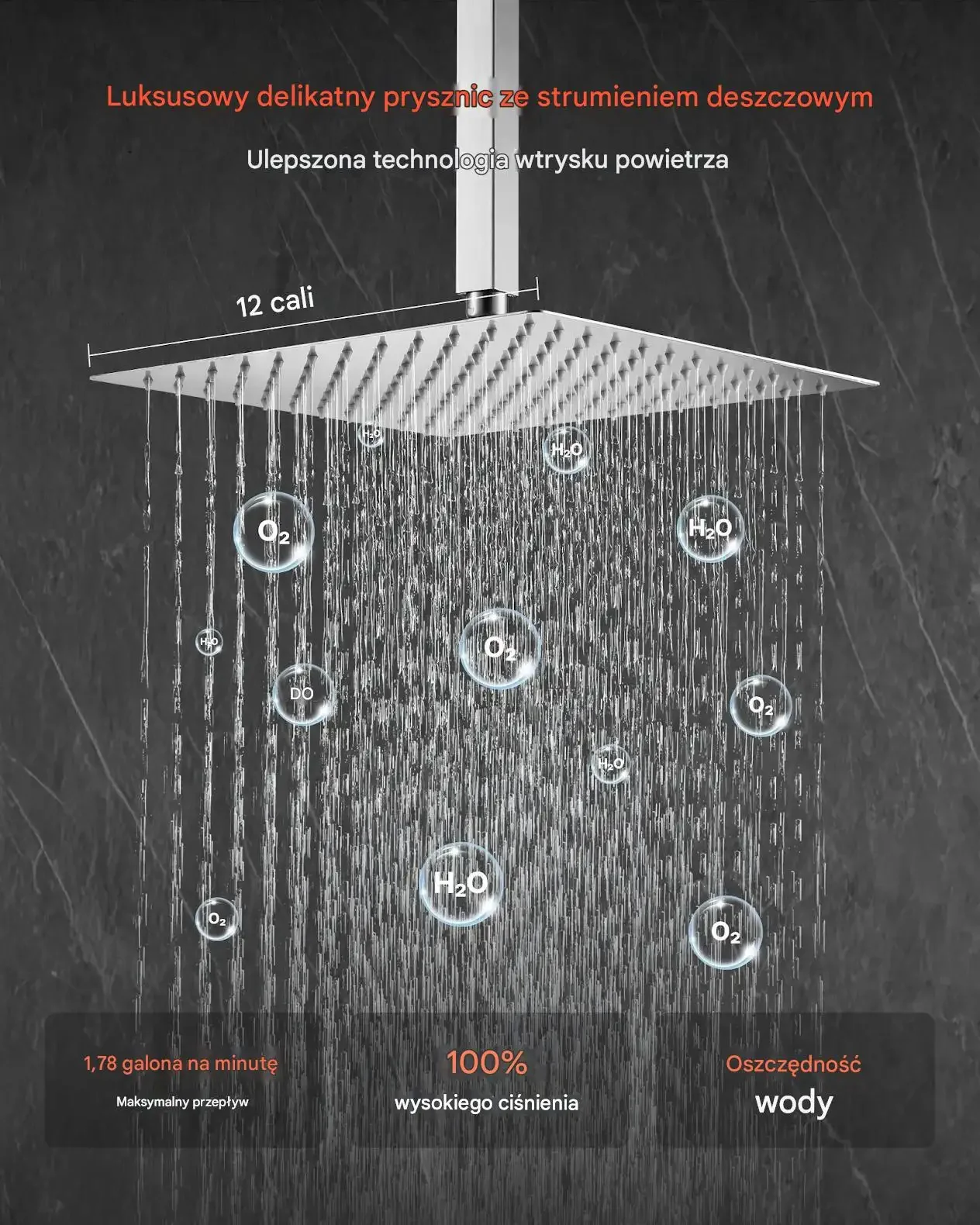 - ✅ Prysznic wysokociśnieniowy: Technologia wtrysku powietrza zapewnia wysokie ciśnienie wody nawet przy niskim ciśnieniu w instalacji. Przepływ wody 6,7 litra na minutę gwarantuje relaksujące doświadczenie spa.