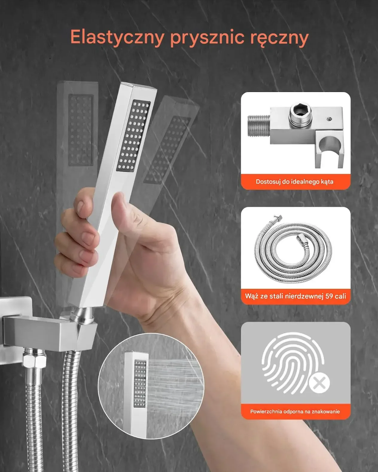 - ✅ Regulowana słuchawka prysznicowa: Ergonomiczna słuchawka z wężem ze stali nierdzewnej o długości 1,8 metra, idealna do mycia zwierząt, dzieci czy trudno dostępnych miejsc. Regulowany uchwyt pozwala na elastyczne ustawienie kąta.