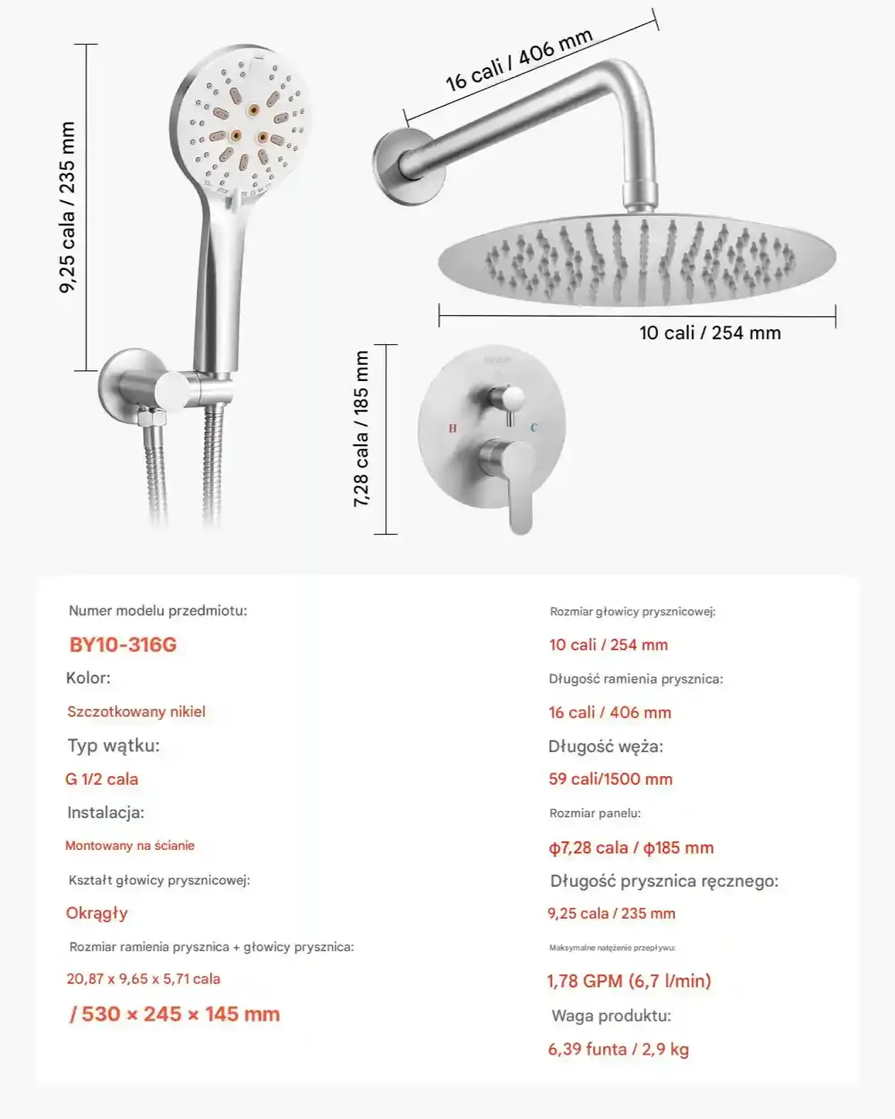 - ✅ Oszczędność wody: Przepływ 6.7 l/min zapewnia ekonomiczne zużycie wody bez utraty komfortu
