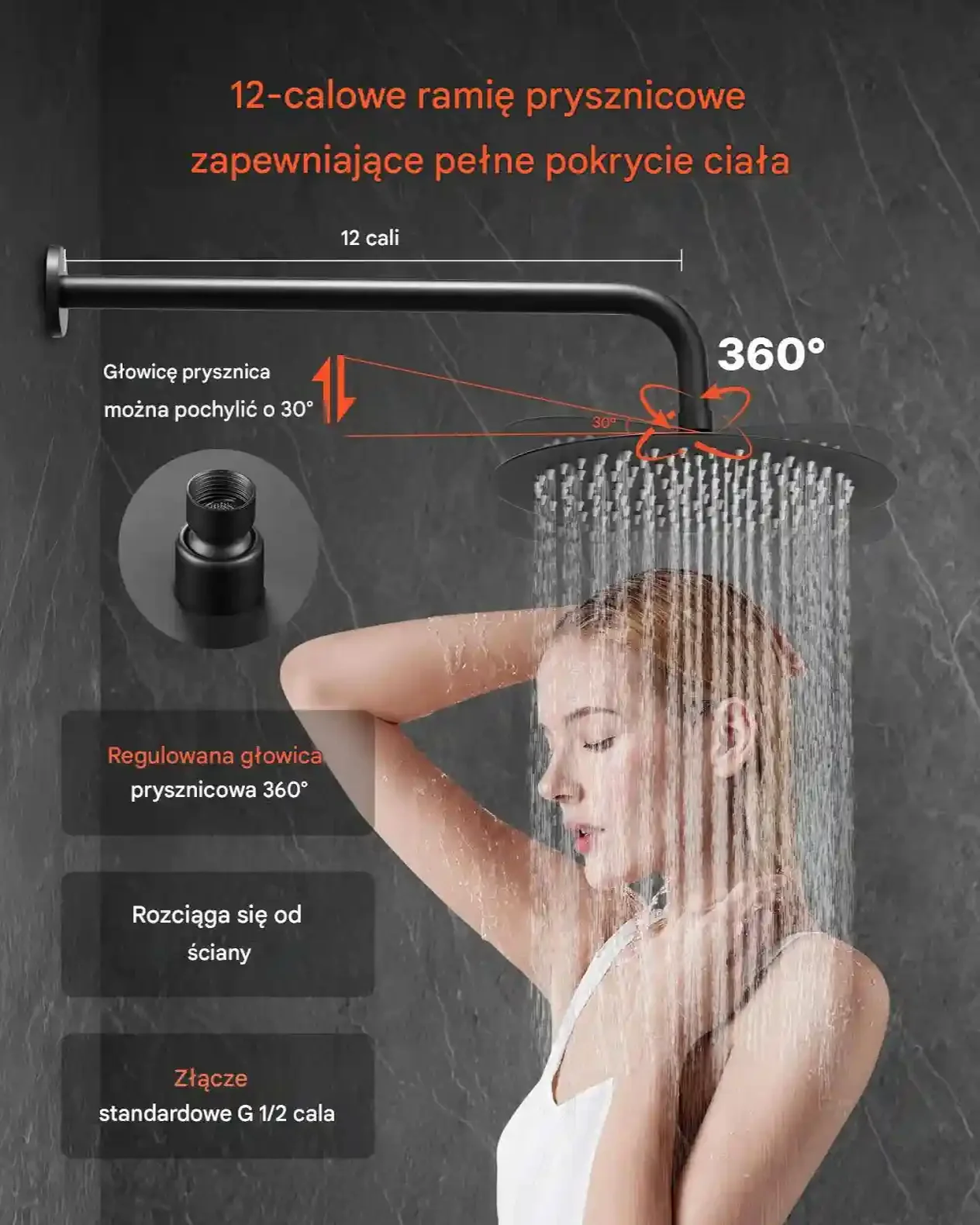 • Łatwy montaż: Standardowy gwint G 1/2 cala umożliwia szybkie podłączenie.