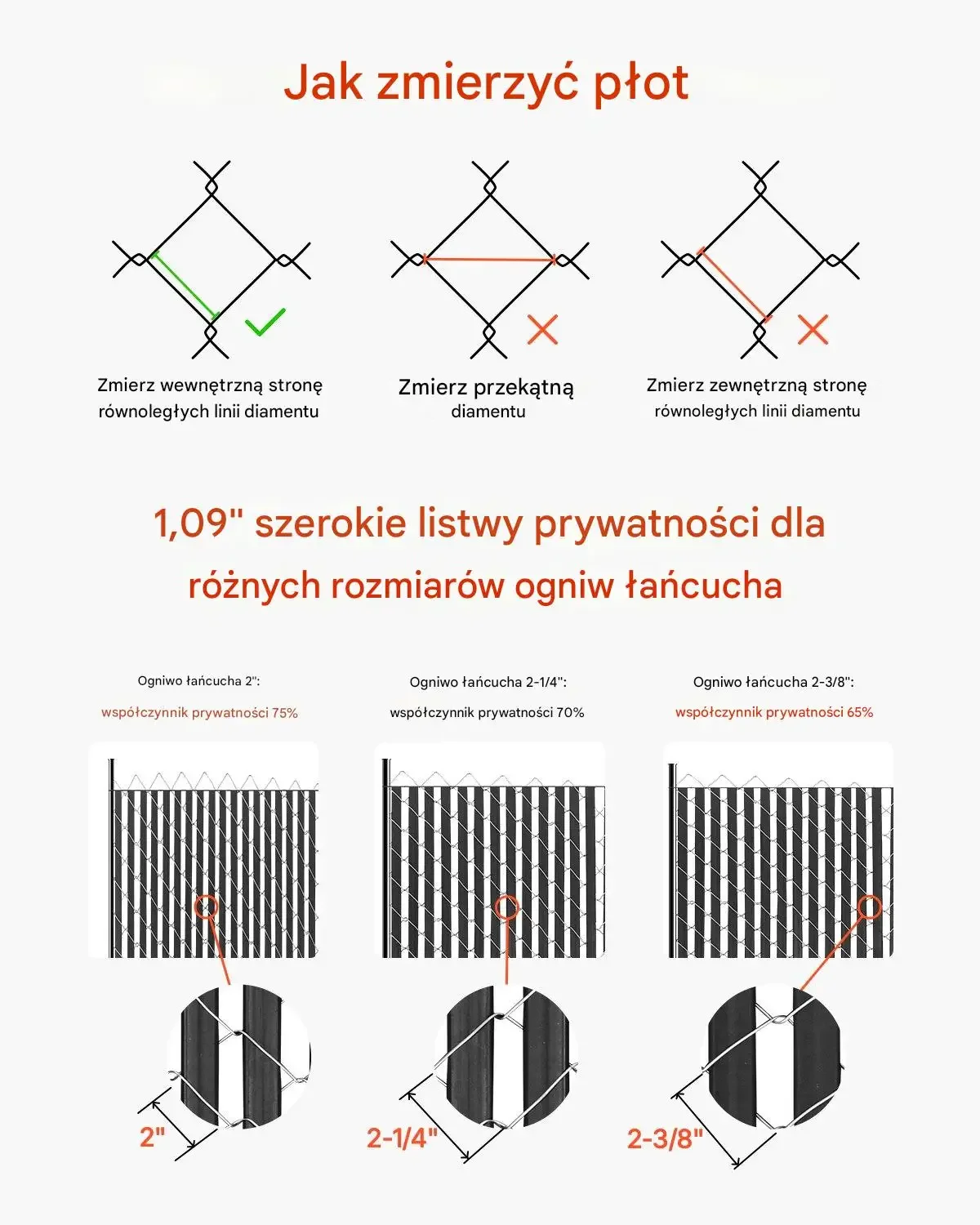 - ✅ Do 85% prywatności – zależnie od rodzaju siatki ogrodzeniowej
