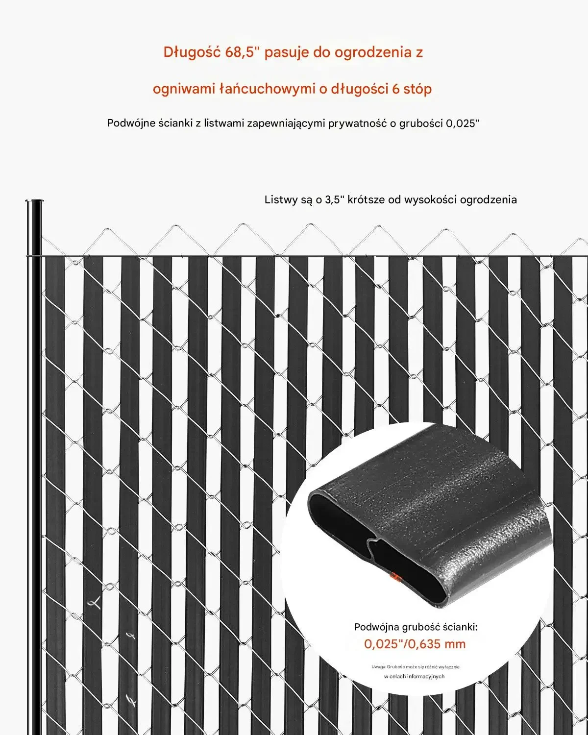- ✅ Długość listwy: 174 cm – idealne dopasowanie do ogrodzeń ok. 15 cm