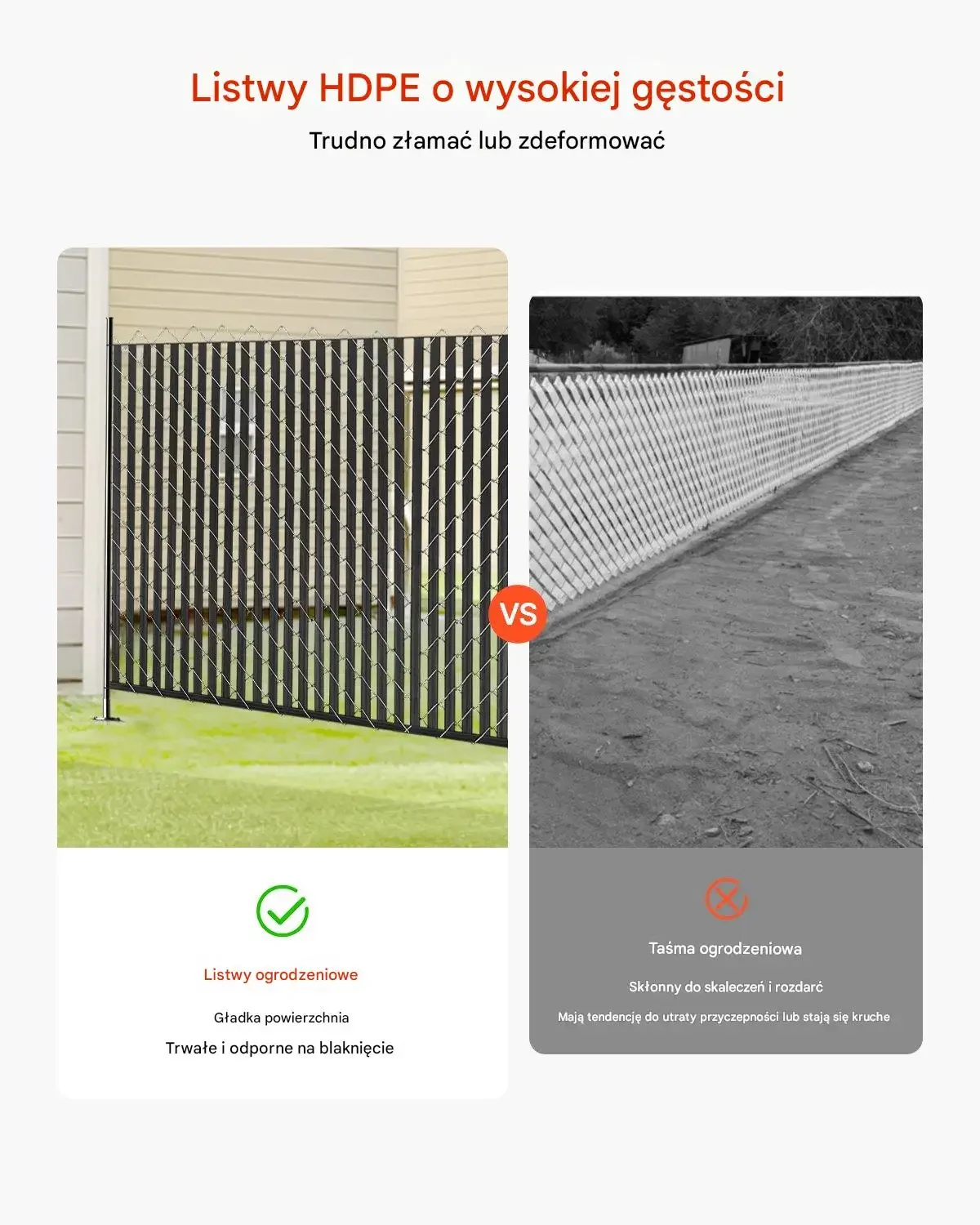 Listwy HDPE o wysokiej gęstości tworzą trwałe i odporne na działanie czynników zewnętrznych ogrodzenie, które zapewnia prywatność i ochronę na posesji, łatwe dopasowanie do różnych konfiguracji ogrodzenia dzięki modułowej konstrukcji.