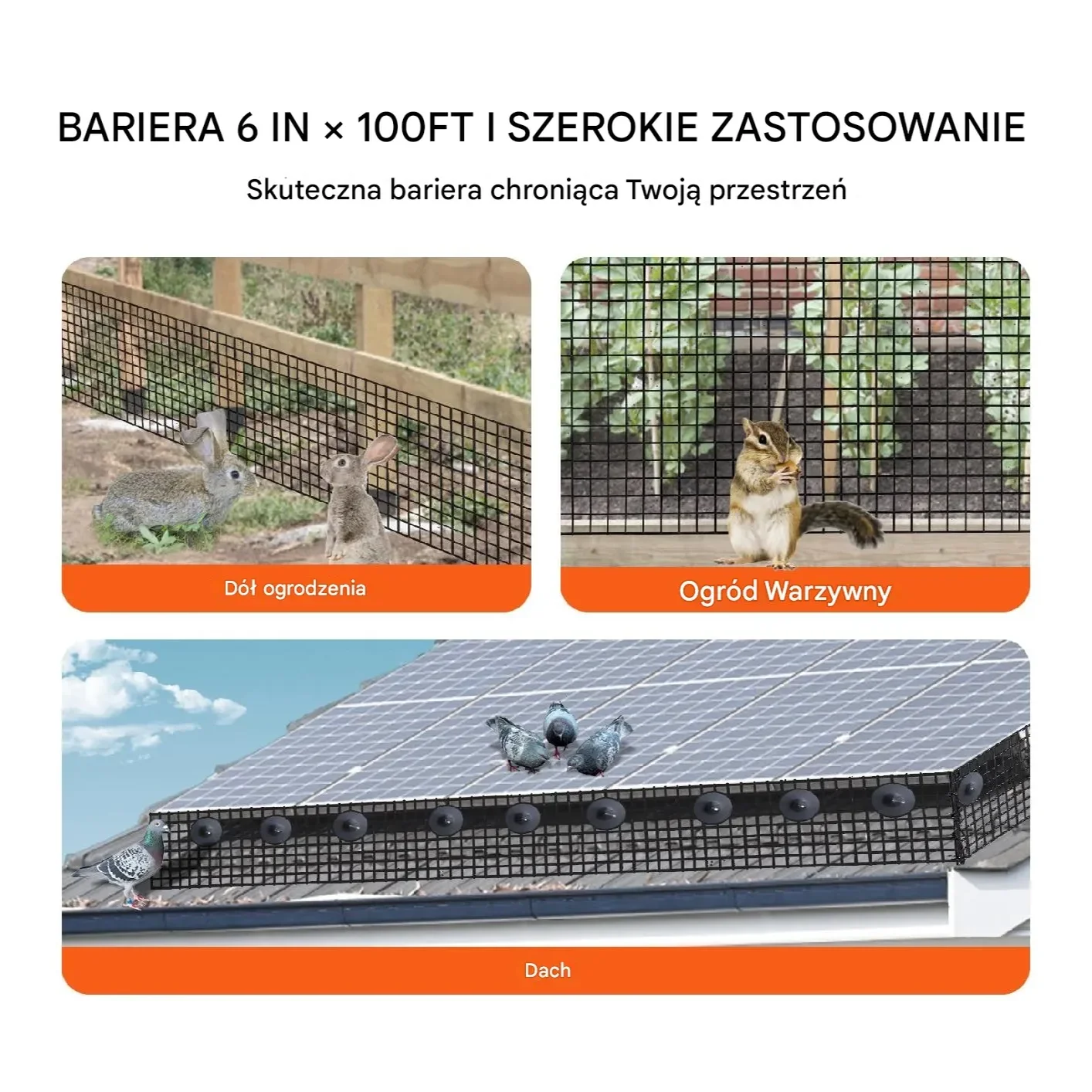 Oprócz zapobiegania przedostawaniu się małych zwierząt na dno paneli słonecznych, nasza osłona przeciw ptakom może być również używana do celów ochronnych wokół rur, kominów, ogrodzeń ogrodowych i ogrodów warzywnych.