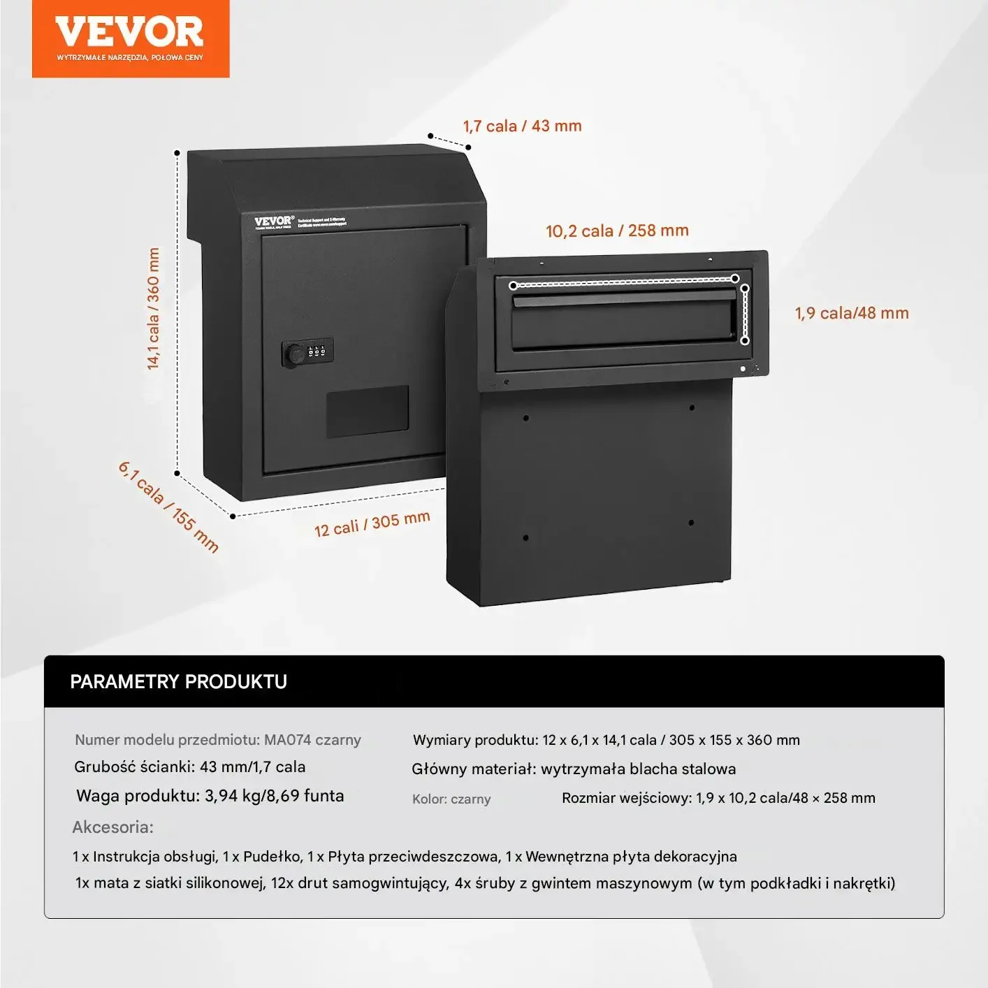 - ✅ Duża pojemność: Skrzynka o wymiarach 320 × 158 × 430 mm umożliwia przechowywanie listów, dokumentów, kluczy oraz małych paczek.