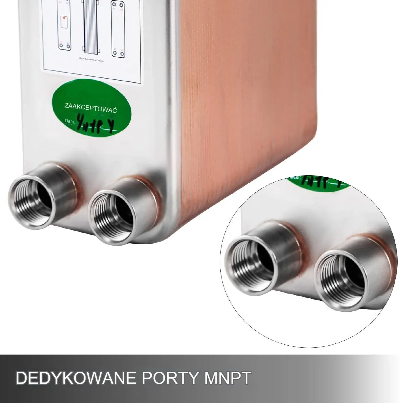 - Materiał: Stal nierdzewna 316L, miedź 99,9%