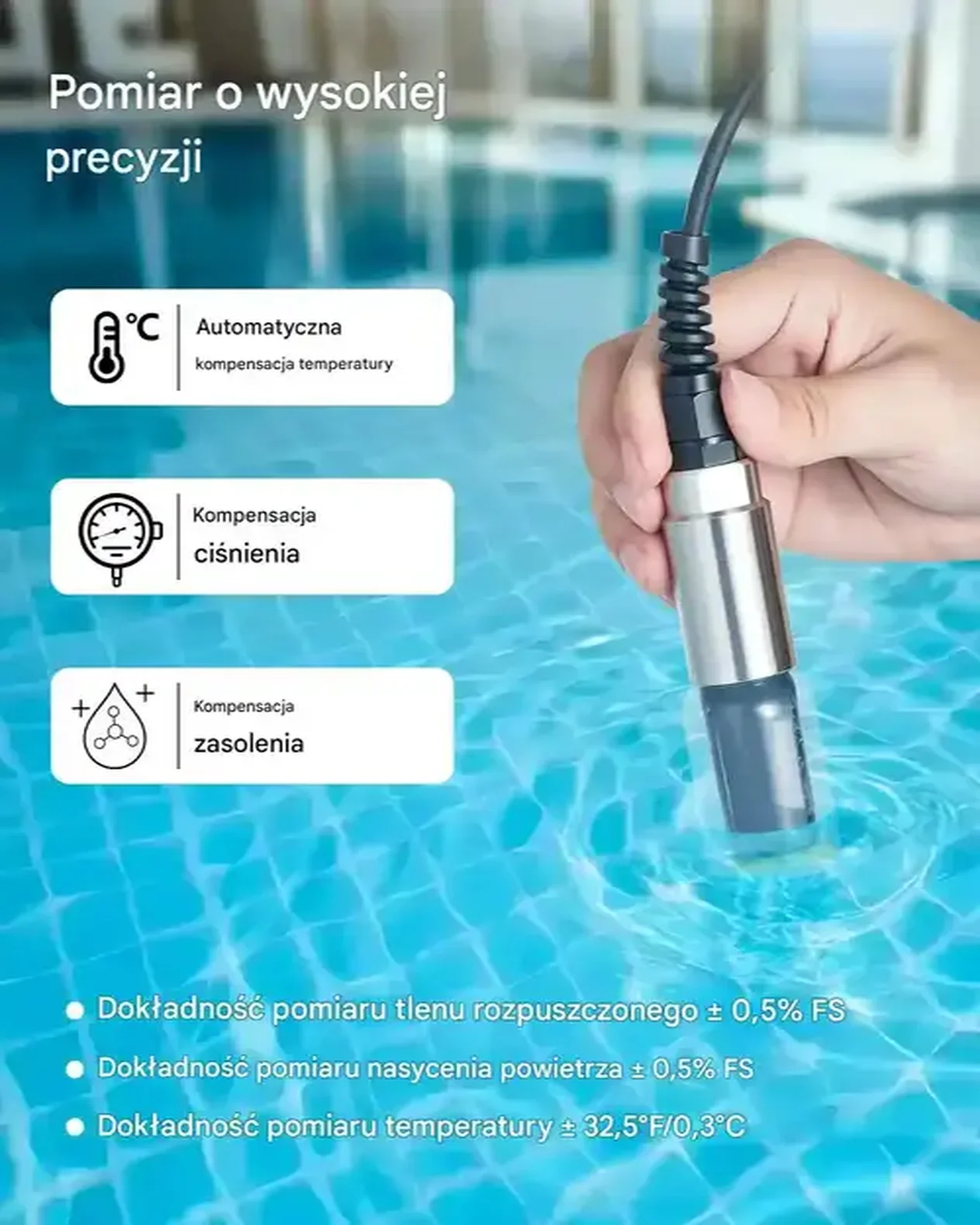 • Dokładność tlenu rozpuszczonego: ± 0,5% FS