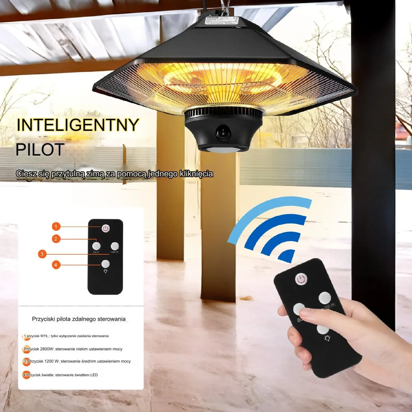 Promiennik podczerwieni 2000 W – szybkie, efektywne ogrzewanie z pilotem