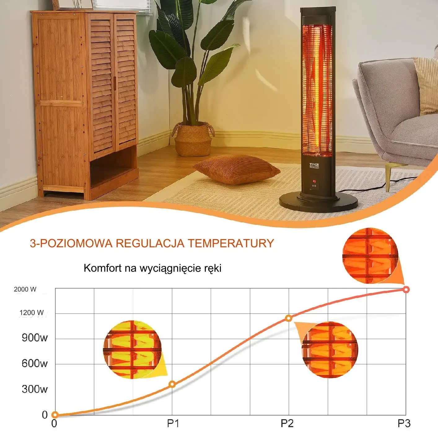 Promiennik podczerwieni tarasowy 2000W z pilotem i regulacją mocy