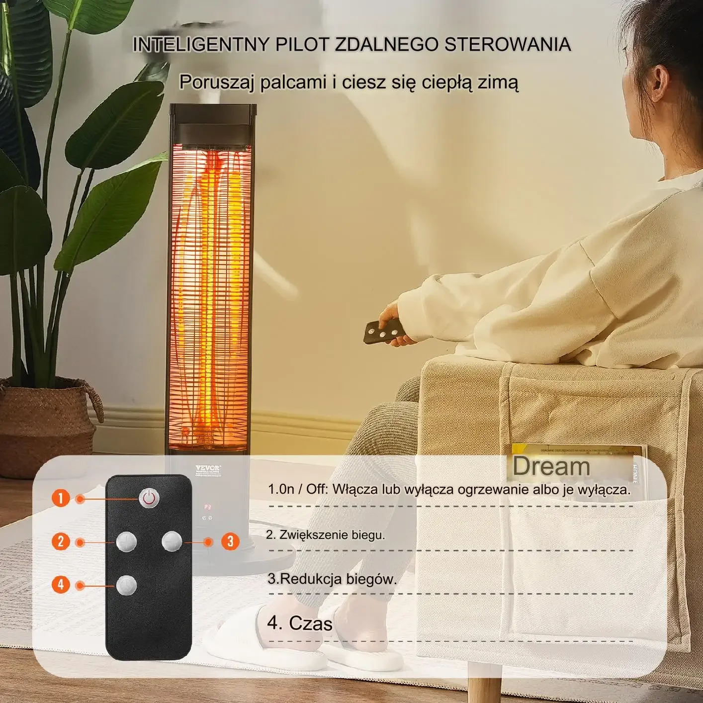 Promiennik podczerwieni o mocy do 2000 W to niezawodne źródło ciepła w zimne dni i wieczory. Dzięki nowoczesnym rurkom grzewczym z włókna węglowego, urządzenie nagrzewa się już w 3 sekundy, zapewniając natychmiastowe ciepło. Idealnie sprawdzi się na tarasie, w ogrodzie, garażu czy domowych wnętrzach.