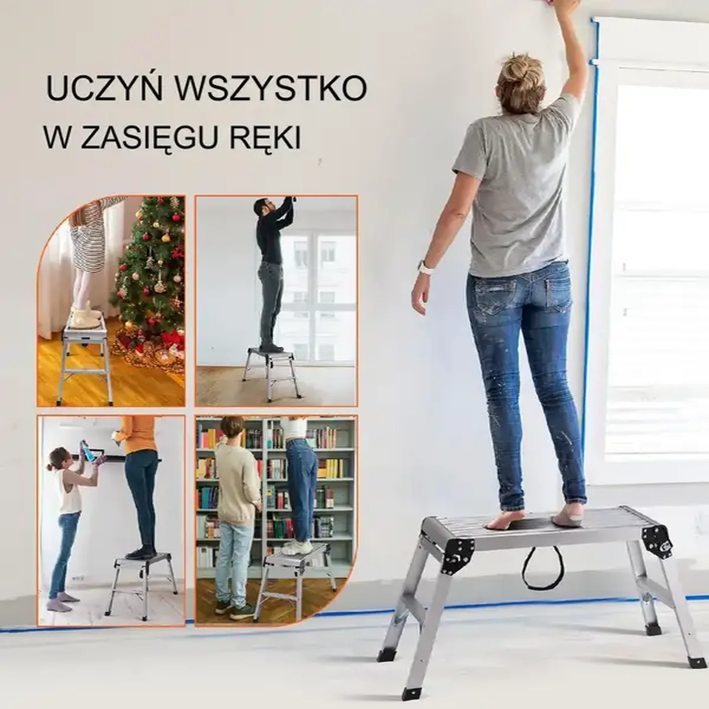 - ✅ Wysokość do 4,6 m – doskonała do prac konserwacyjnych, montażowych, ogrodniczych
