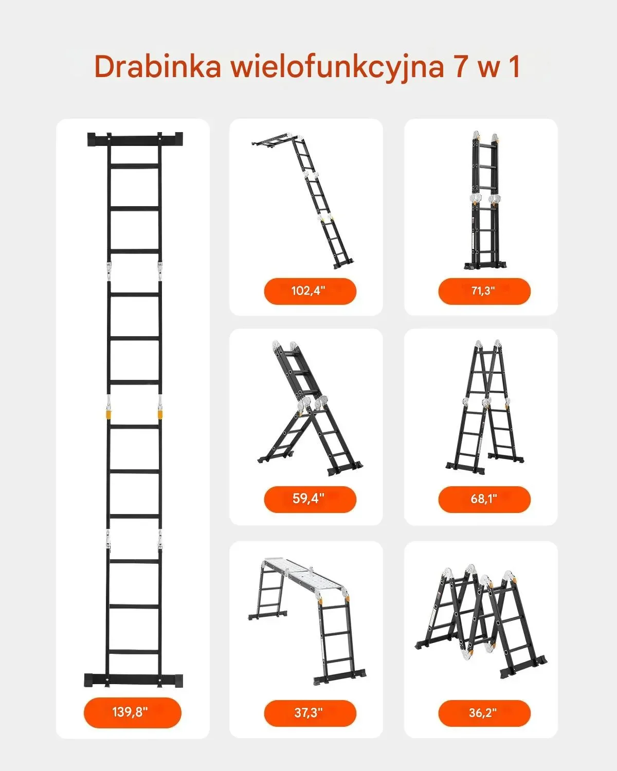 - Ilość szczebli po rozłożeniu (jedna strona): 7