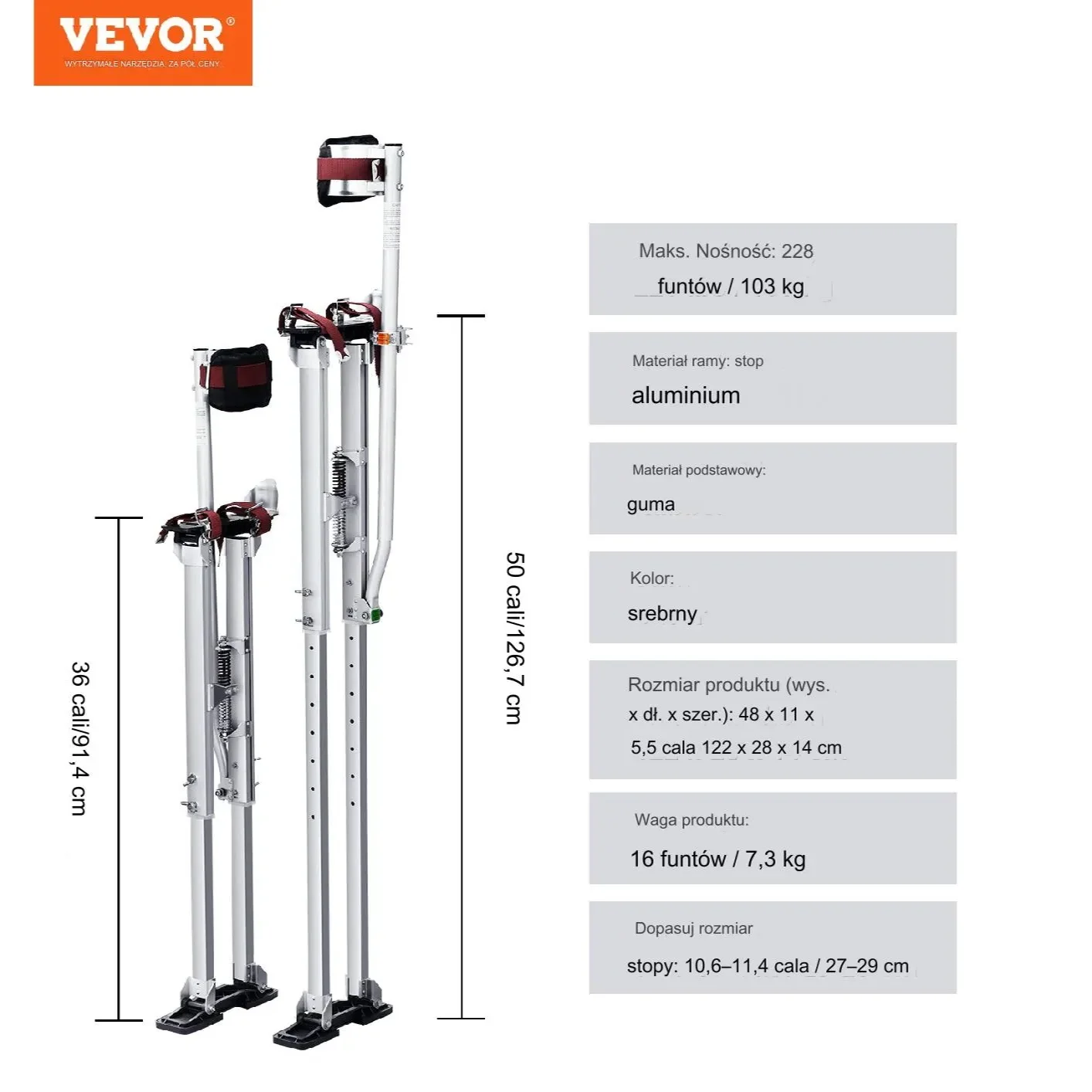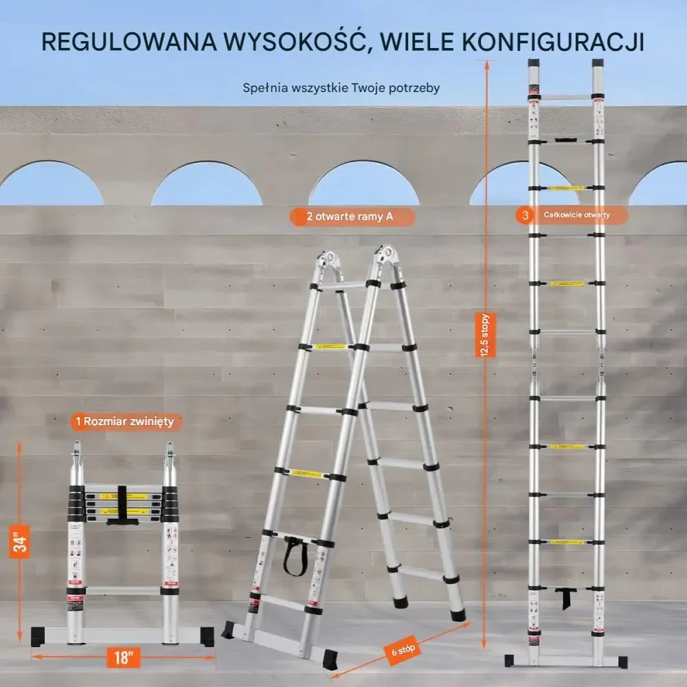 - ✅ Trwała konstrukcja aluminiowa – odporna na rdzę i korozję, wytrzymała na duże obciążenia