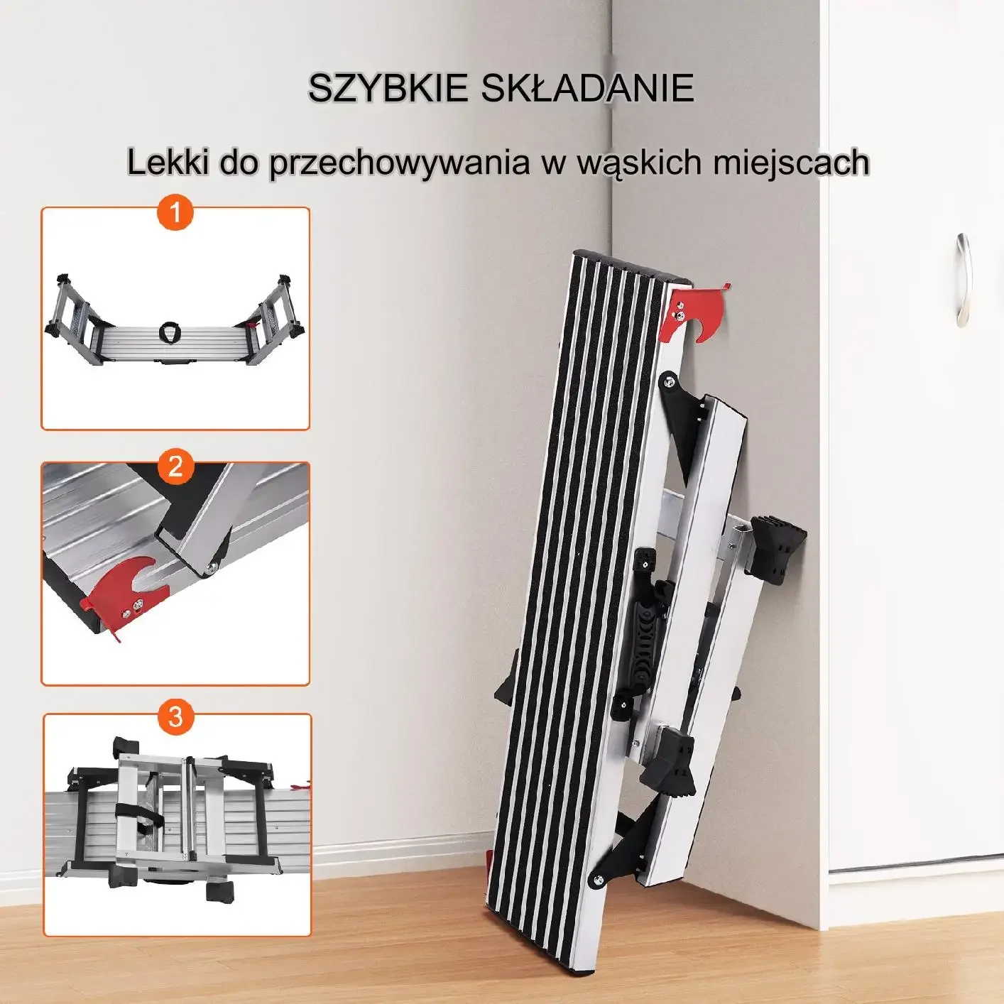 Start / Sklep / Dom i Ogród / Budownictwo i Akcesoria / Prace na wysokości / Stopnie i drabiny domowe / Składana platforma robocza aluminiowa – antypoślizgowa przenośna 660 kg