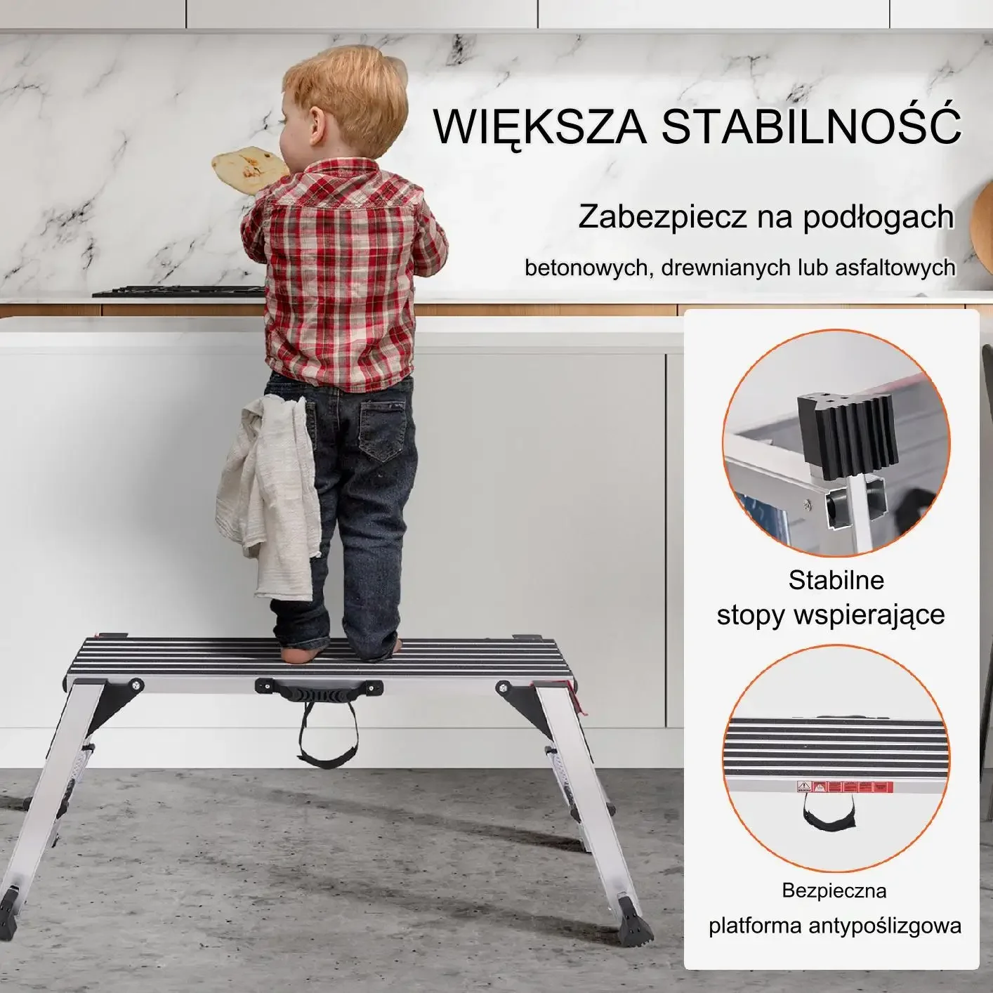 - ✅ Antypoślizgowa powierzchnia robocza i stopy – pełna stabilność nawet na śliskich podłożach