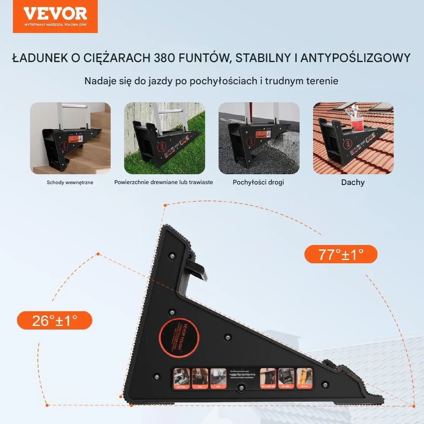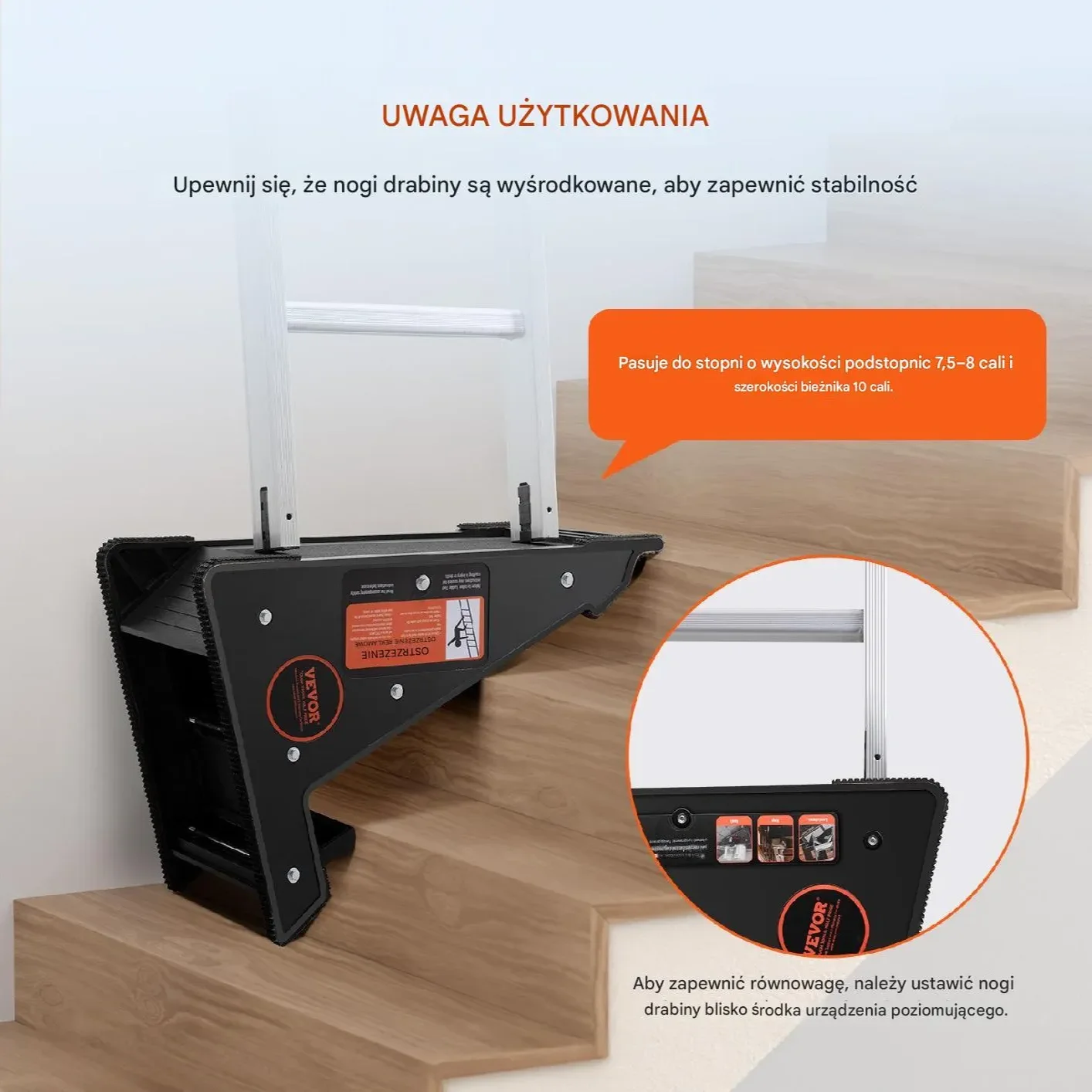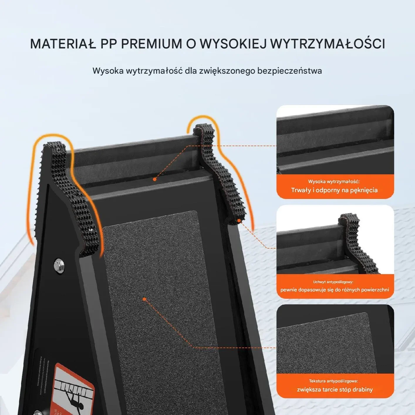 - ✅ Uniwersalność zastosowania – kompatybilność z różnymi typami drabin, zarówno na zewnątrz, jak i wewnątrz