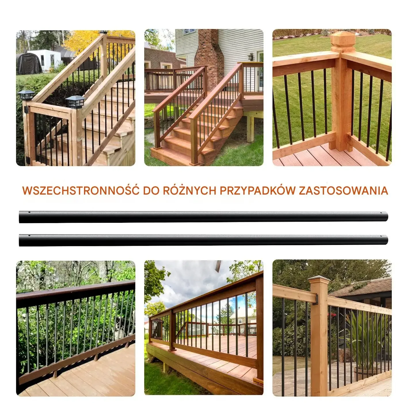- Idealne dopasowanie: standardowe wymiary dla większości balustrad i ogrodzeń
