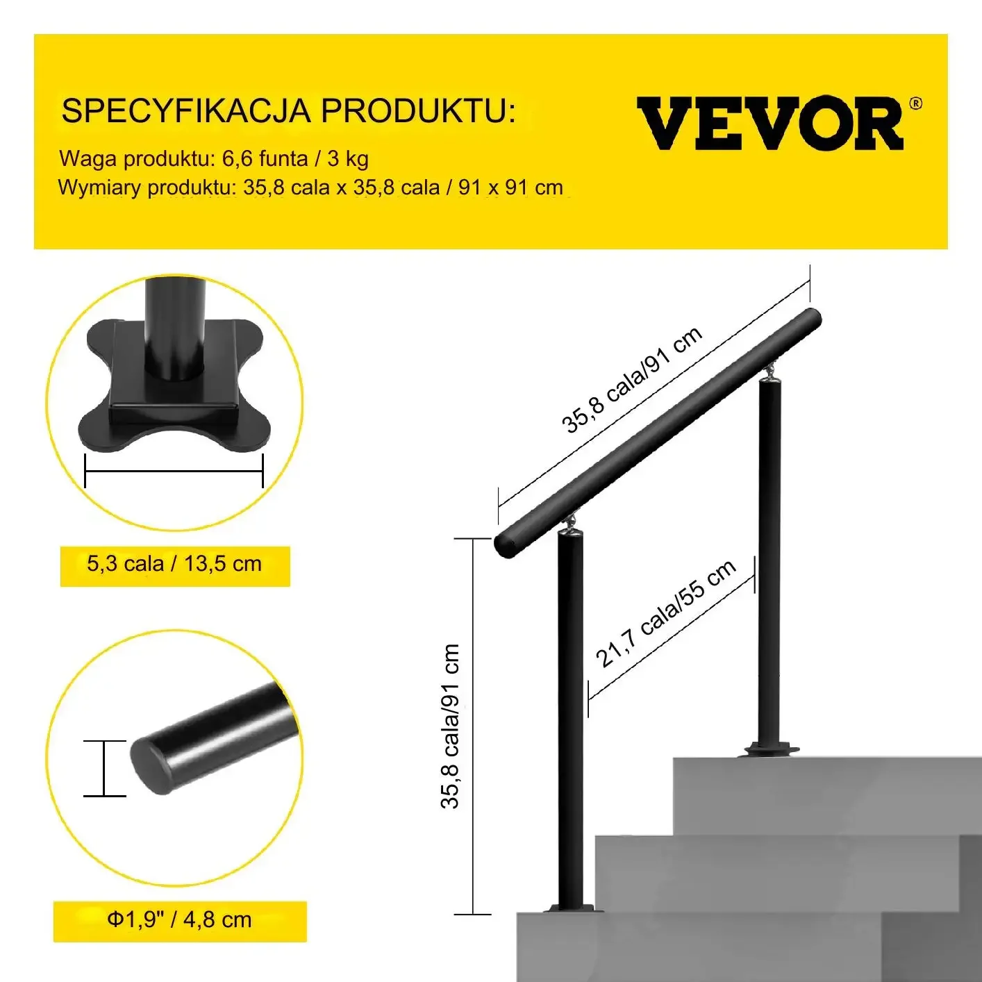 - ⭐ Użyteczna przy balustradach poziomych, pochyłych i pionowych