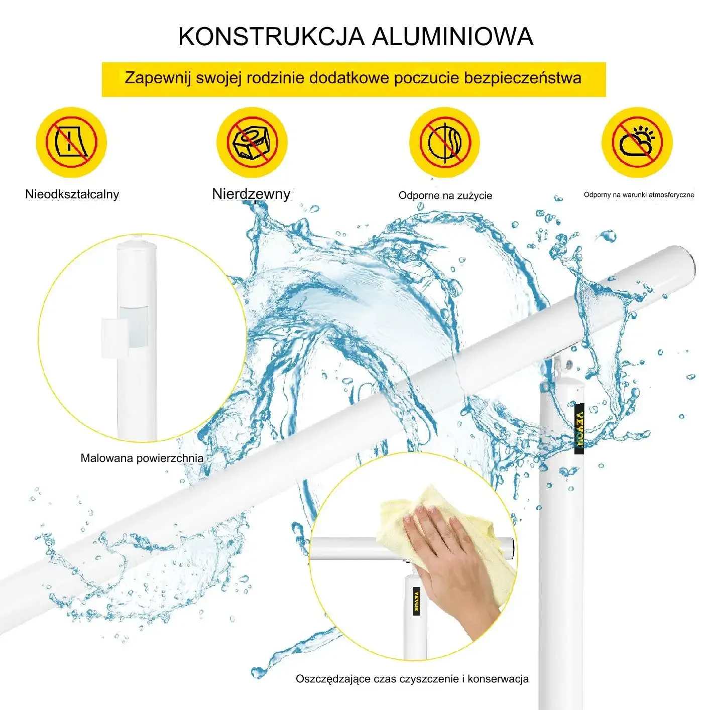Biała poręcz aluminiowa do 5 stopni – Regulowana, wytrzymała, bezpieczna