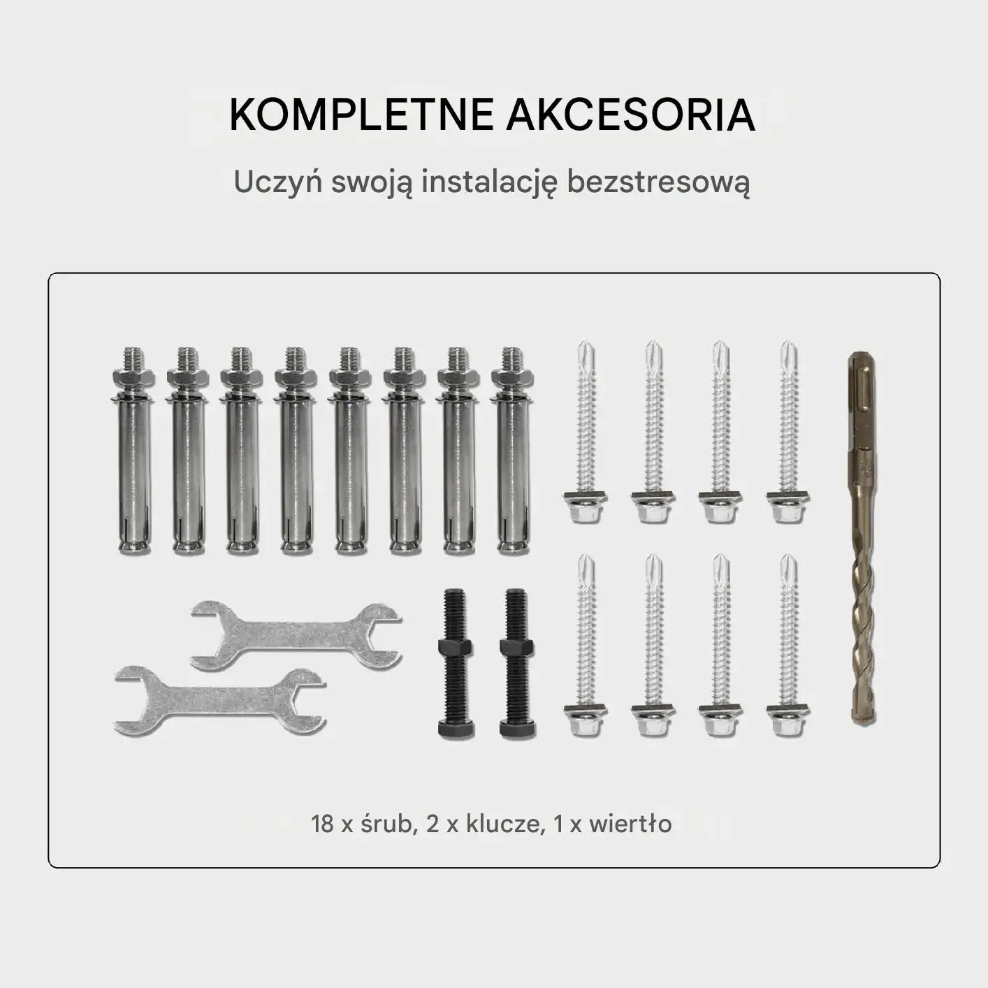 - Akcesoria montażowe – komplet śrub i mocowań do instalacji.