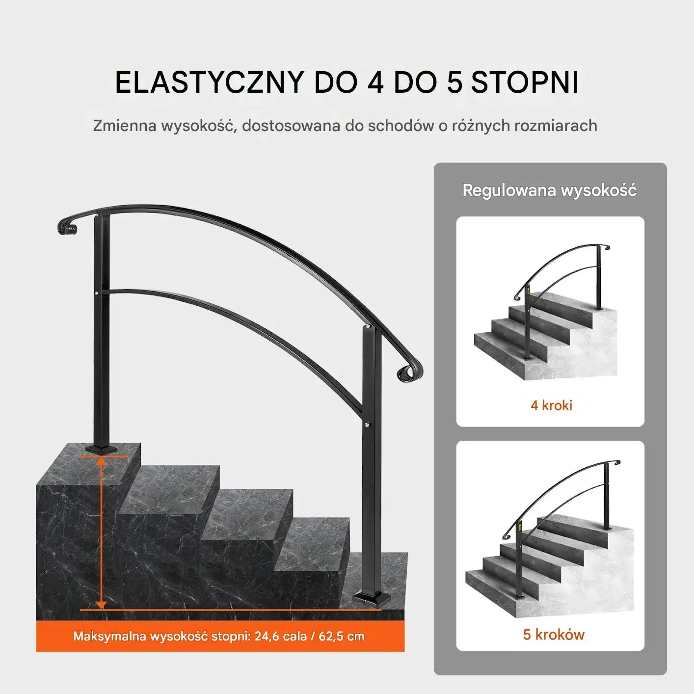 - ➡️ Uniwersalne dopasowanie: Regulowana wysokość umożliwia montaż przy różnych typach schodów