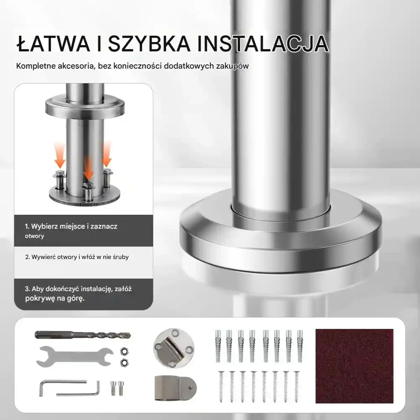 - ✅ Solidna konstrukcja: Wykonana z trwałej stali nierdzewnej, zapewnia stabilność i długowieczność użytkowania w każdych warunkach.