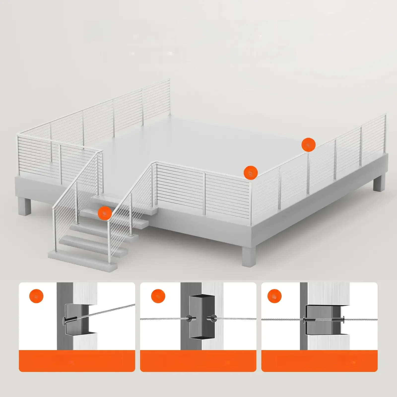 Wybierz nasz słupek poręczy kablowej o wysokości 106 cm, który łączy wytrzymałość, funkcjonalność i estetykę, zapewniając bezpieczne i atrakcyjne wykończenie narożników poręczy.
