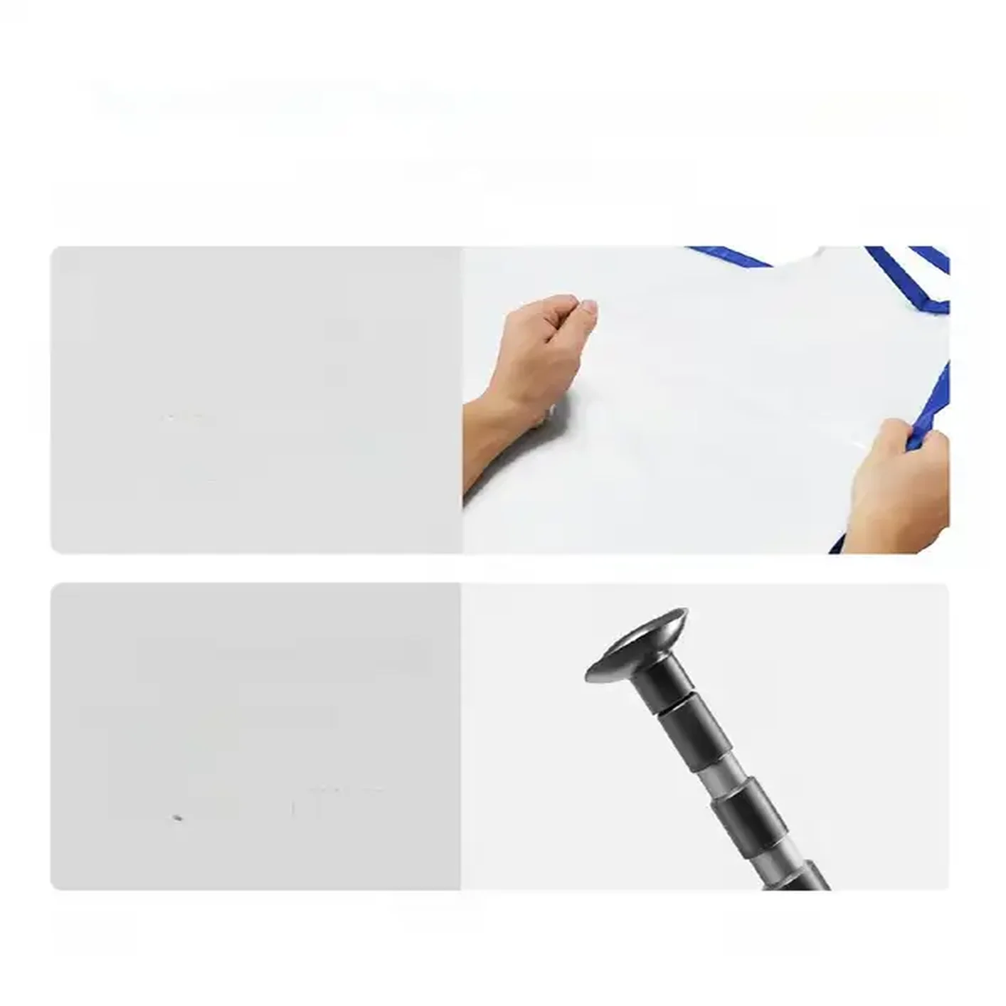 - ✅Antypoślizgowe podstawy: Gumowe nakładki na górze i dole tyczki zapewniają pewny chwyt i chronią powierzchnie przed zarysowaniem.