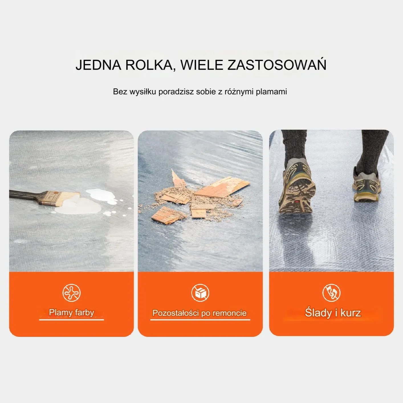 - ✅ Ochrona przed zabrudzeniami – zabezpiecza podłogę przed farbą, kurzem, brudem i uszkodzeniami mechanicznymi