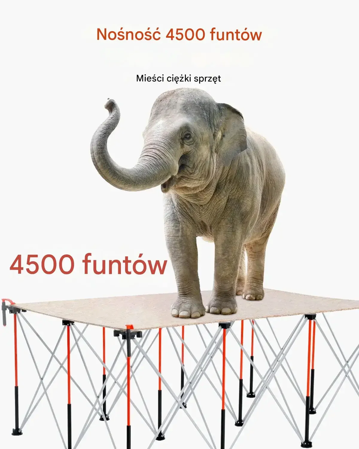 - ✅ Wytrzymała konstrukcja: 12 nóg z stopu aluminium i stali węglowej z wzmocnionymi rurami, udźwig do 2041 kg.
