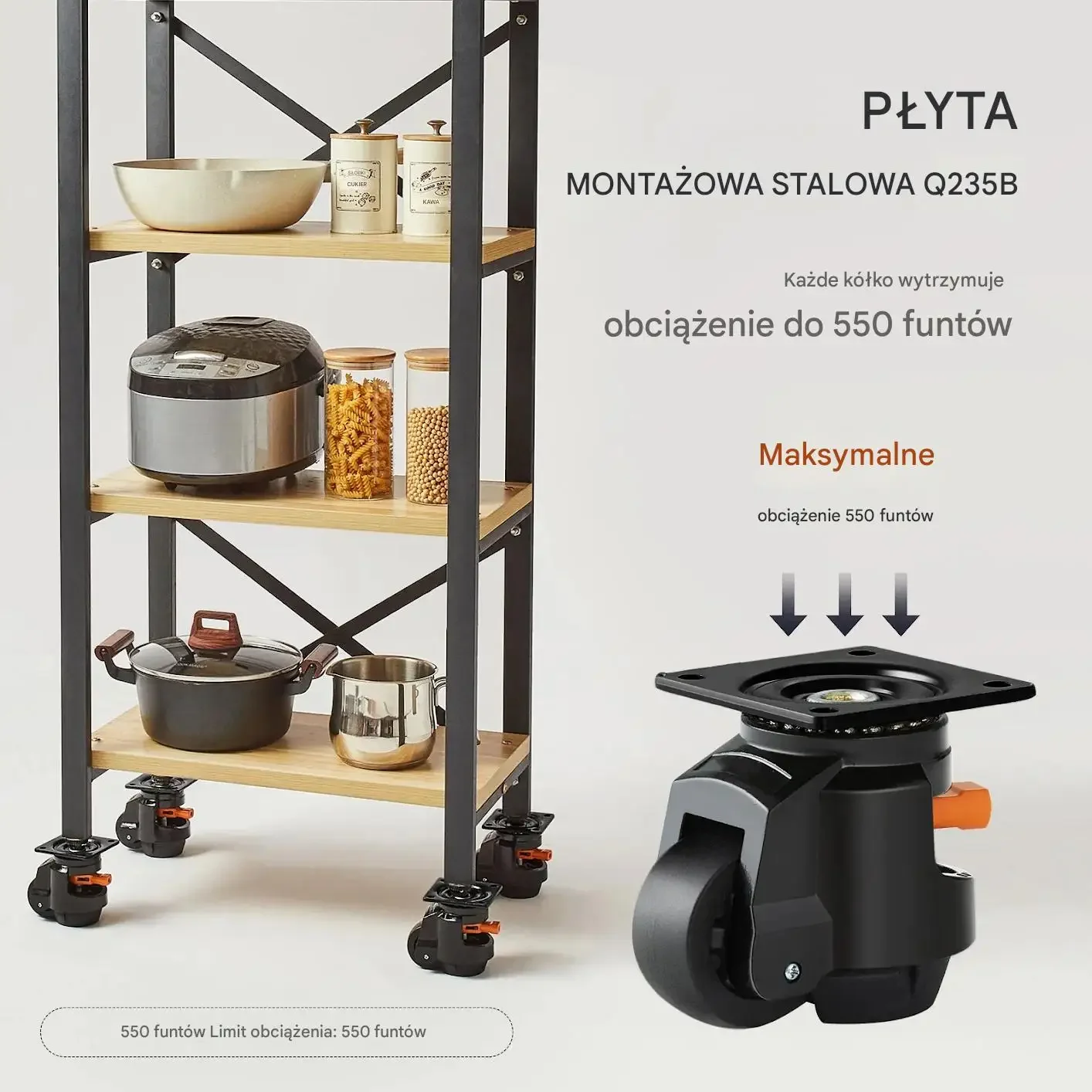 - ✅ Precyzyjna regulacja wysokości: Łatwy w obsłudze uchwyt do regulacji wysokości każdego kółka, zapewniający idealne poziomowanie nawet na nierównych powierzchniach.