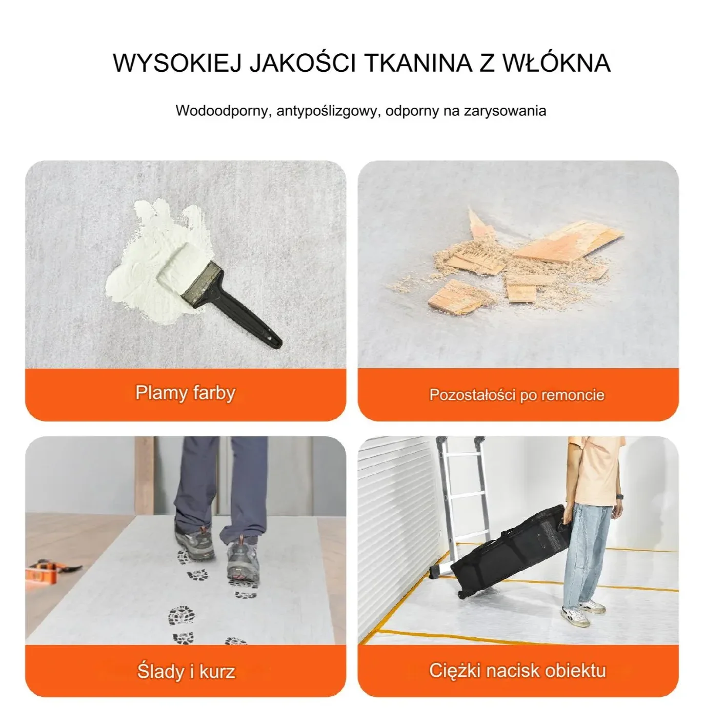 - ✅ Odporność na zużycie, rozdarcia i zabrudzenia – skuteczna ochrona przed kurzem, plamami, farbą i uszkodzeniami mechanicznymi